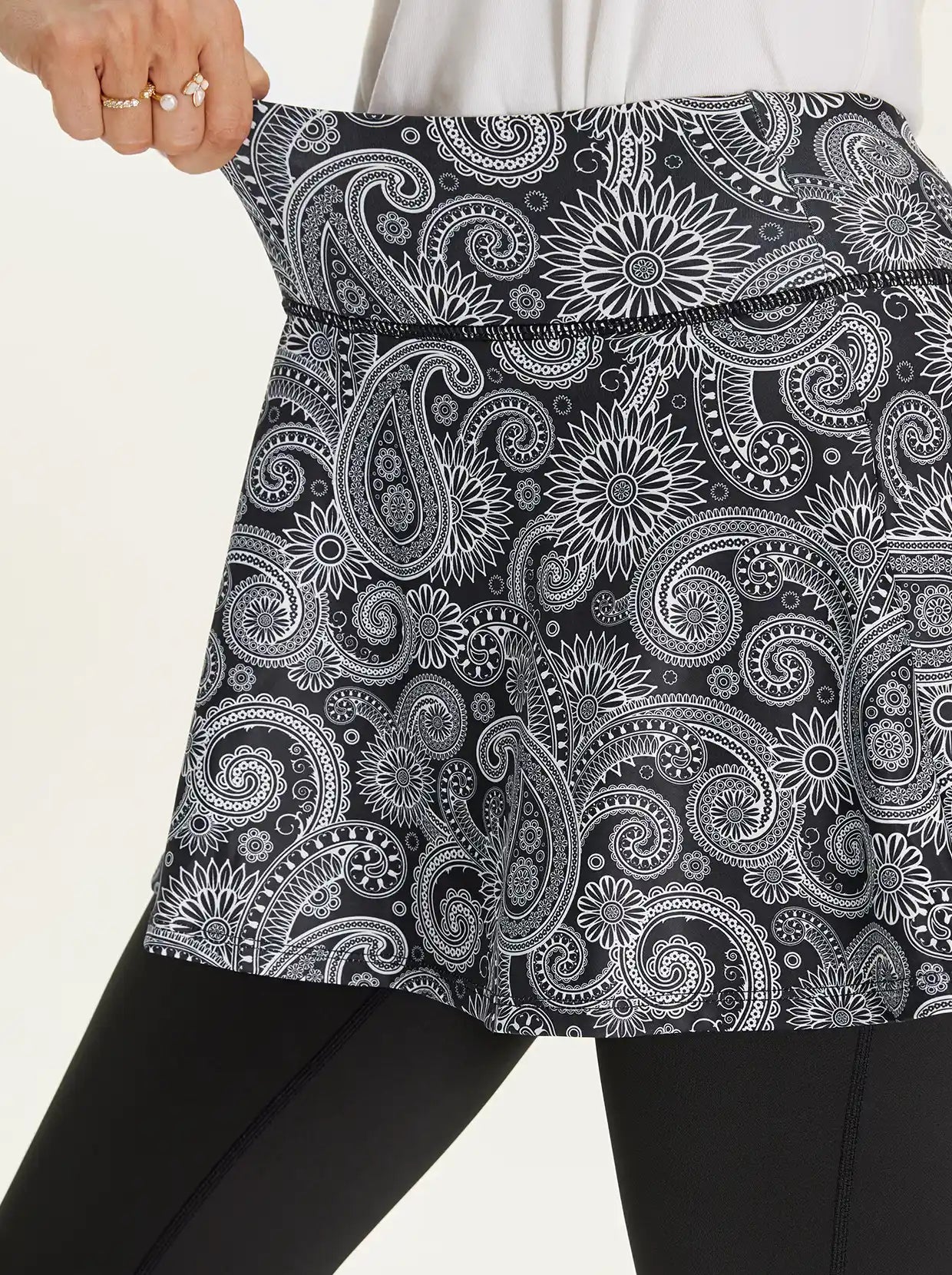 Move through your day—and your game—in our versatile ruffled skirted leggings. The 4-way stretch fabric keeps up with every lunge and pivot, while moisture-wicking technology keeps you cool and dry. Hidden inner pockets mean your essentials stay secure, and the playful ruffled hem adds a touch of flair whether you're on the court or running errands.