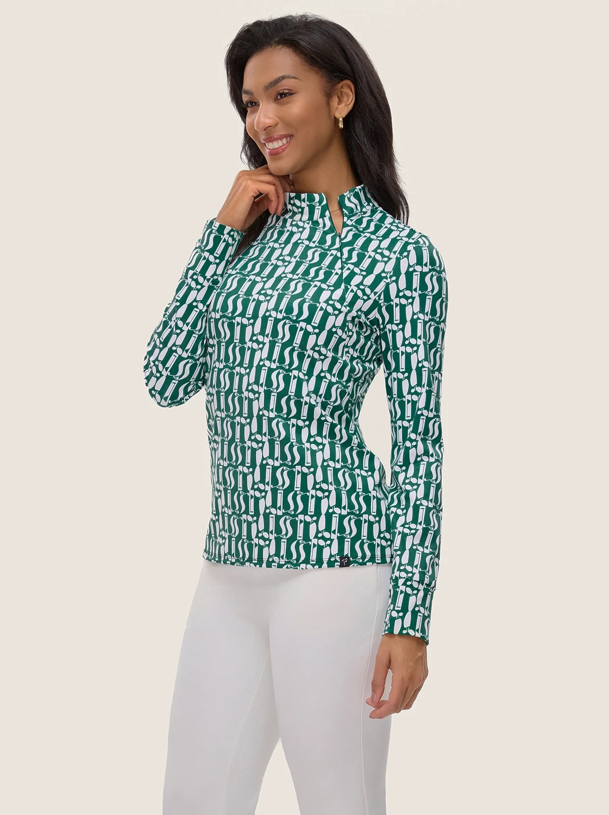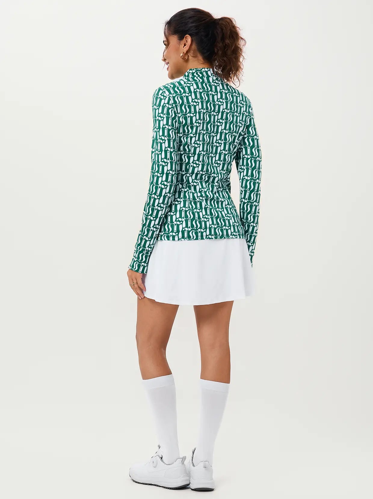 From our Fall for Classics Collection, this long-sleeve shirt features a geometric print in a subtle tonal look. The 4-way stretch fabric provides unrestricted movement, while a functional side zipper and stand collar allow for a customizable fit. A perfect piece for seasonal transition.