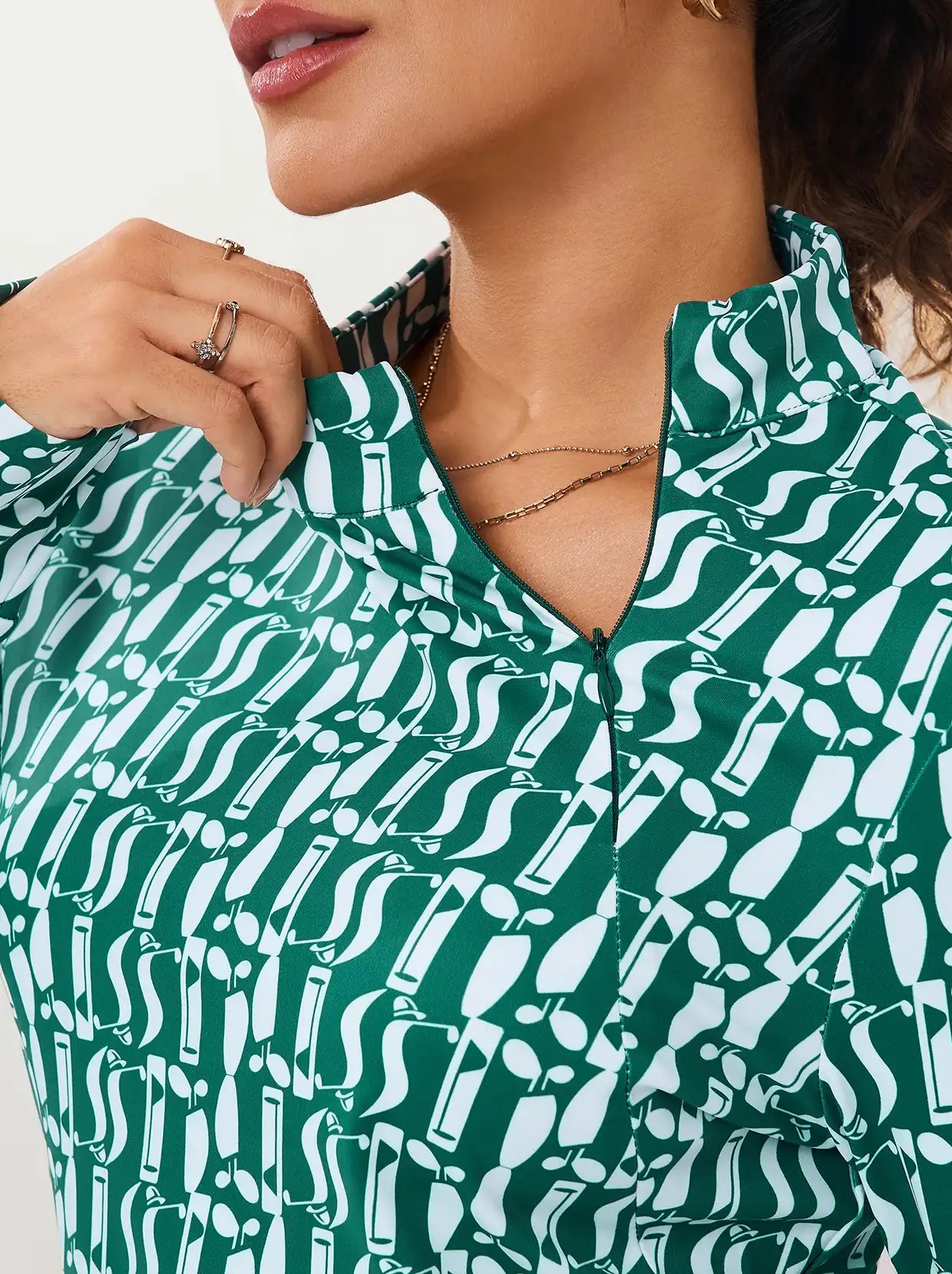 Green Geometric Print Side-zip Long-sleeve Shirt