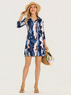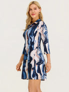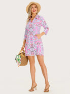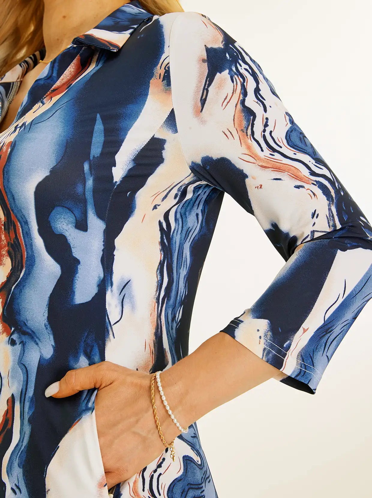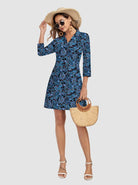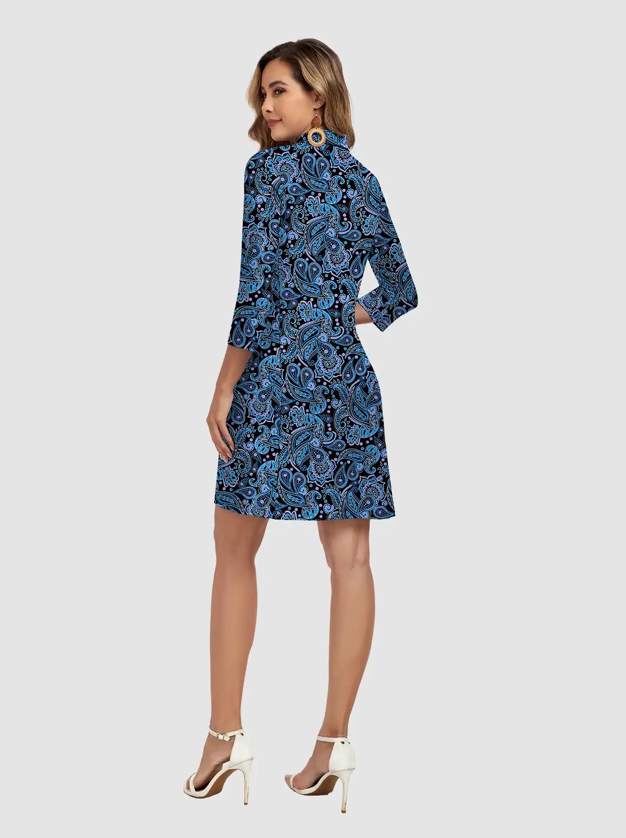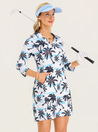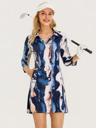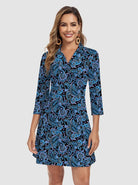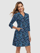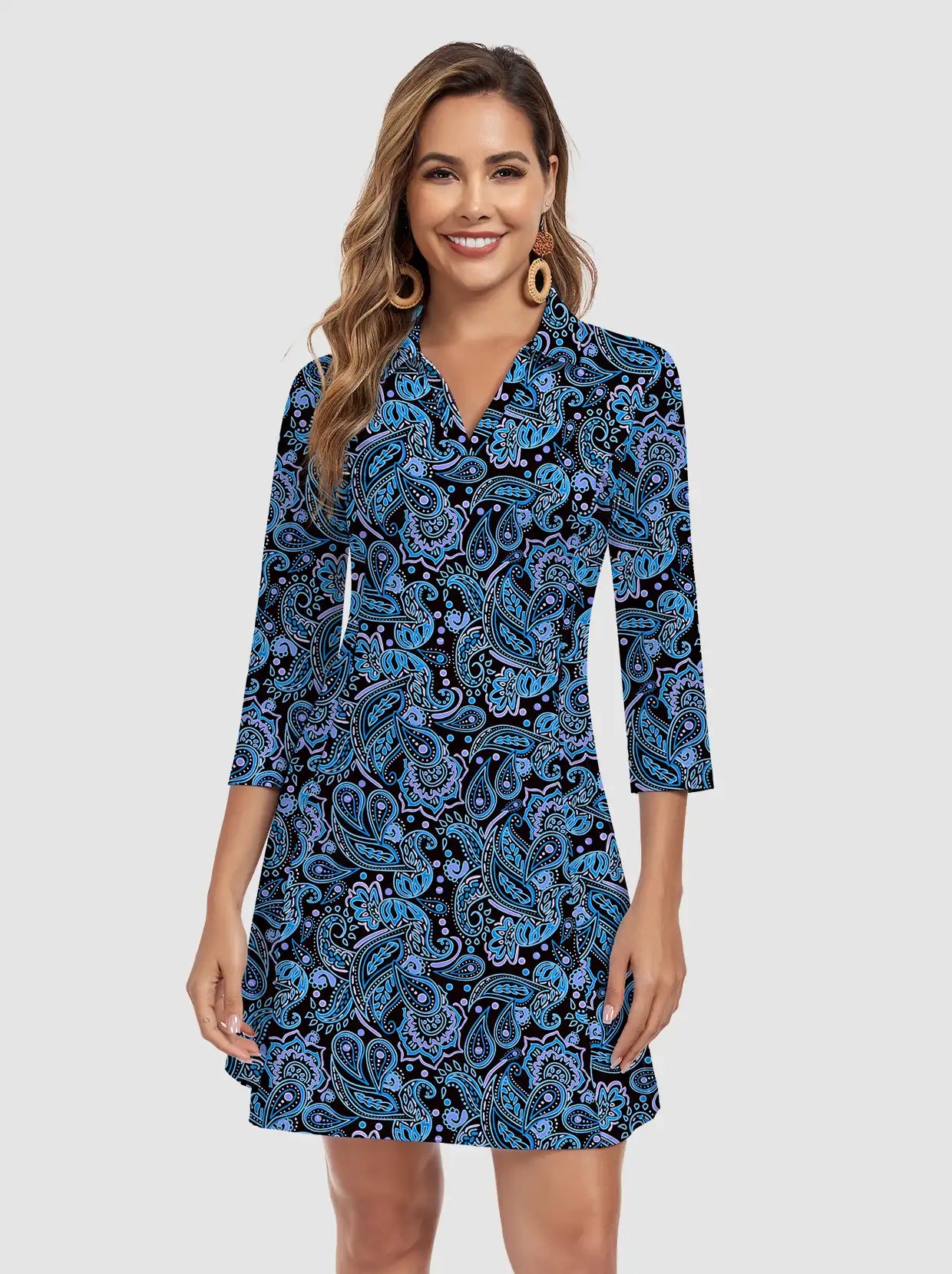 35" V-neck 3/4 Sleeve Polo Dresses with Pockets