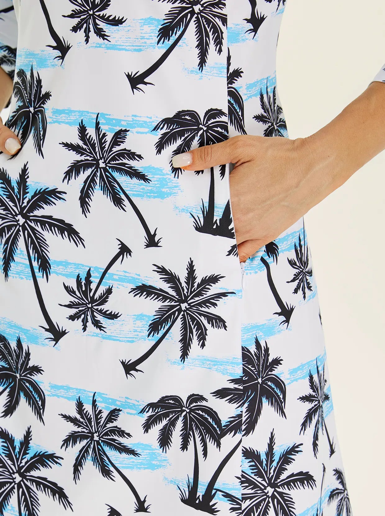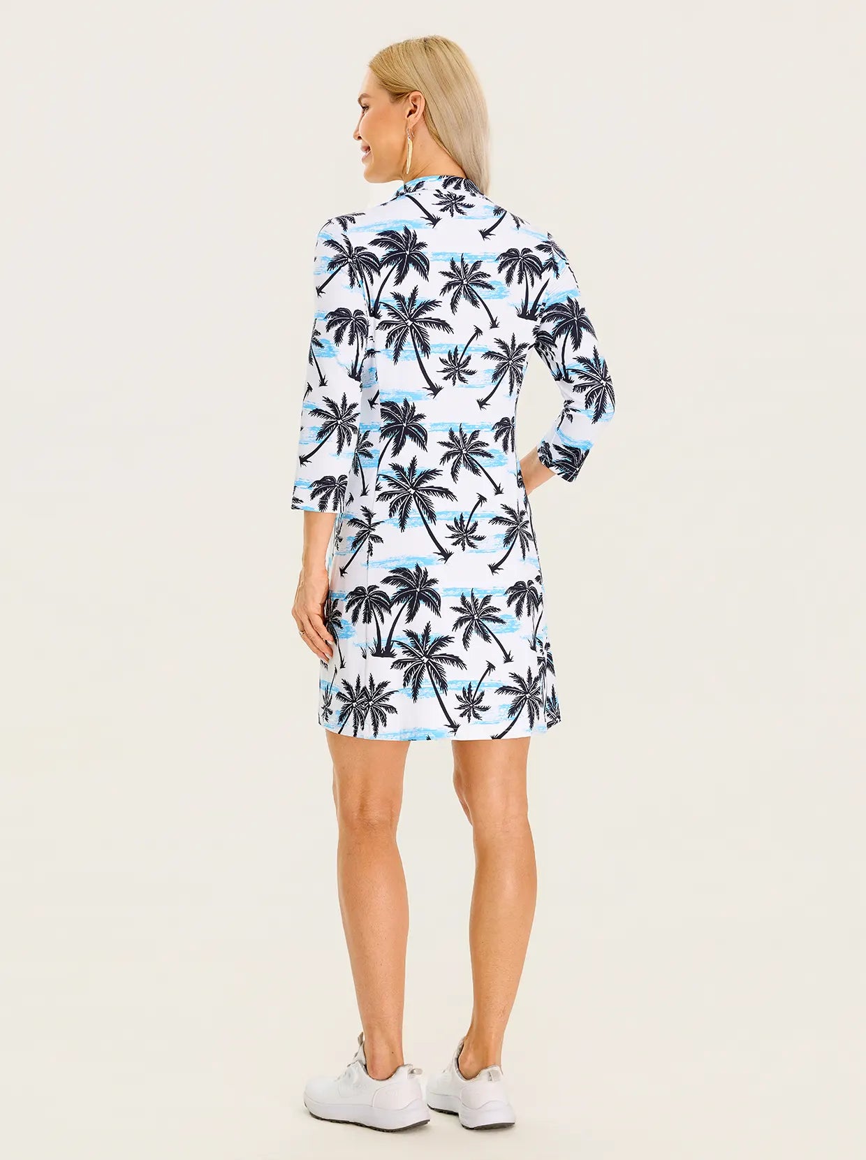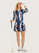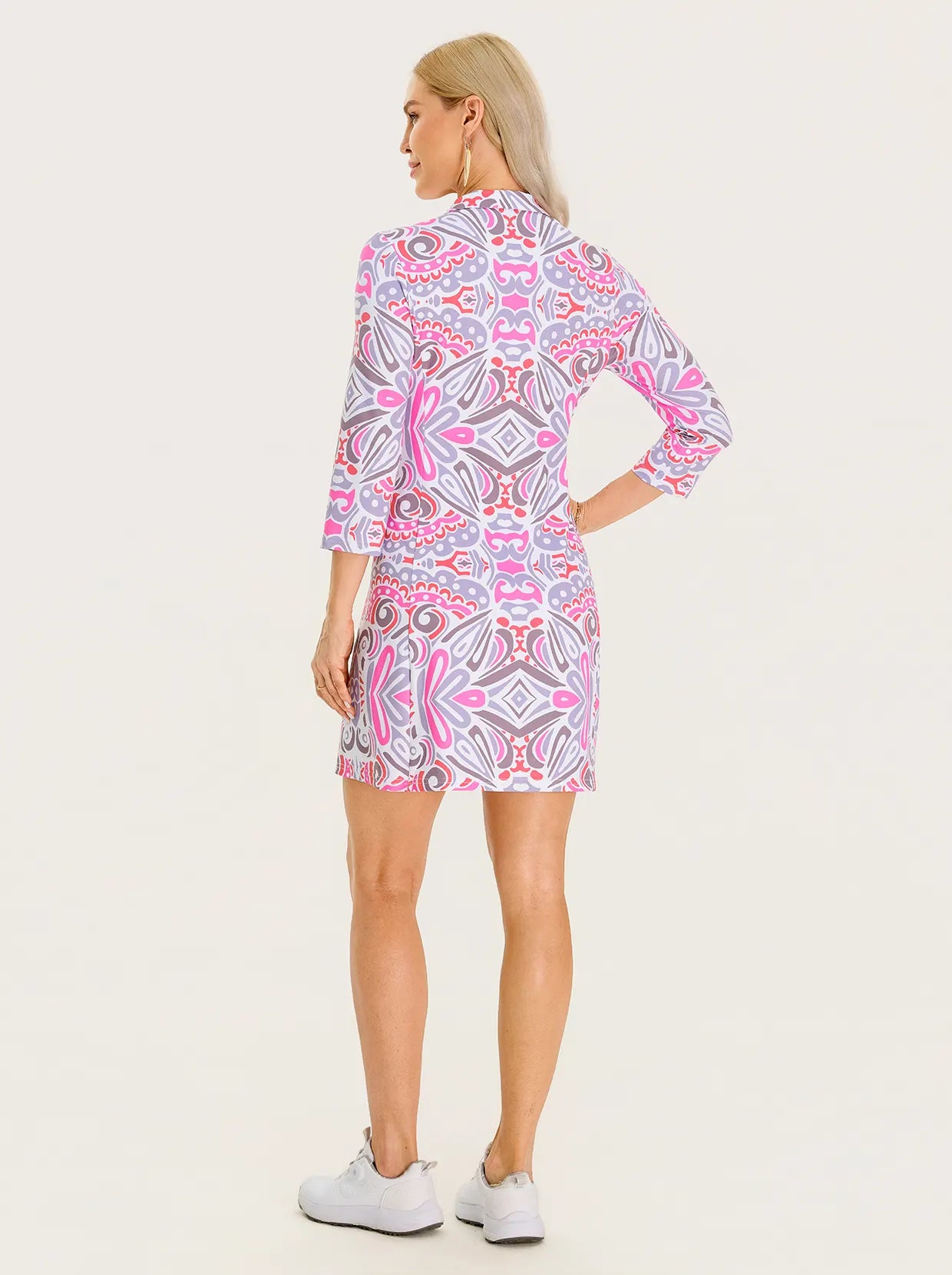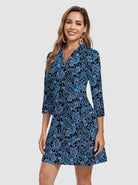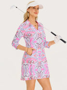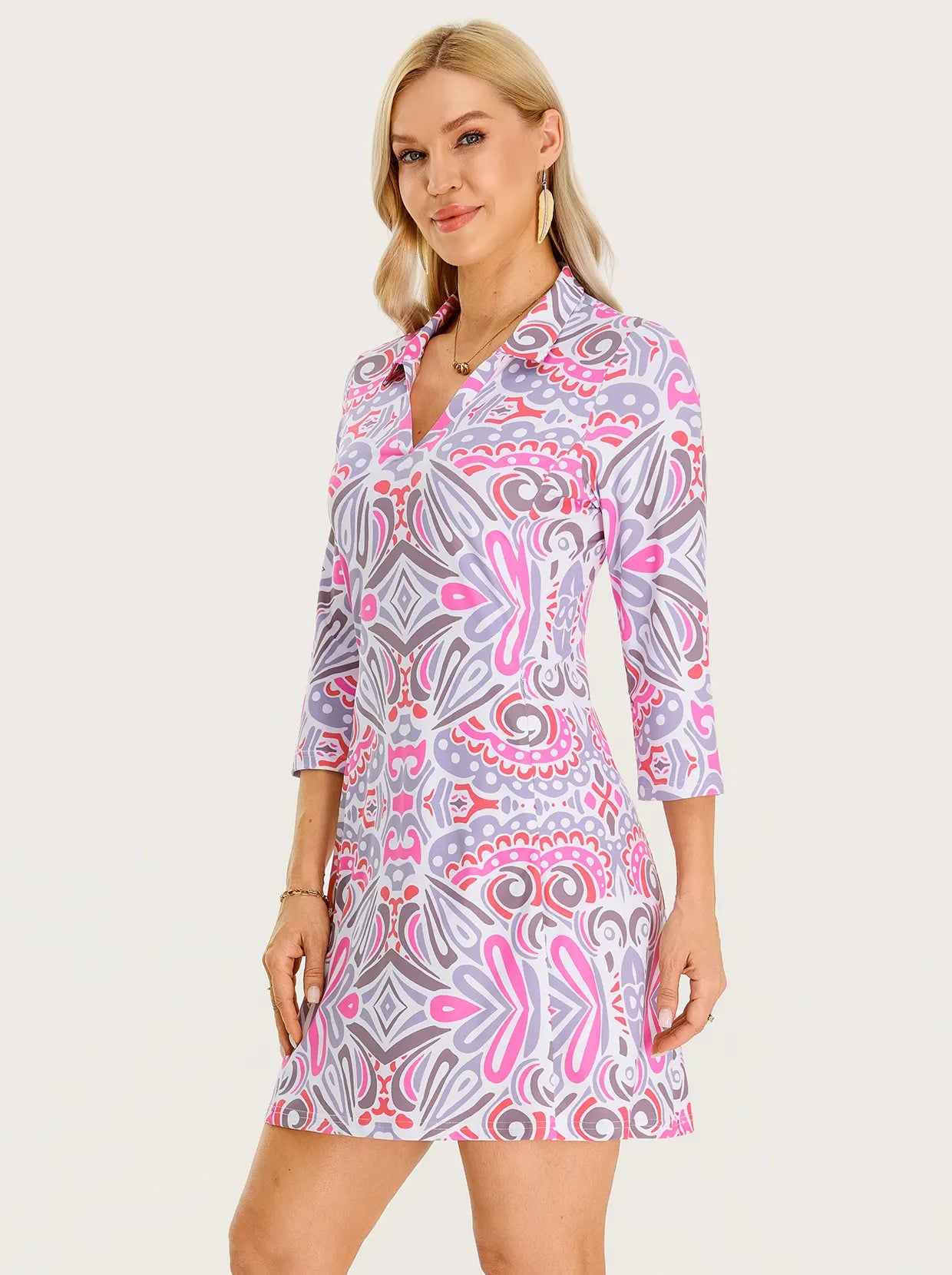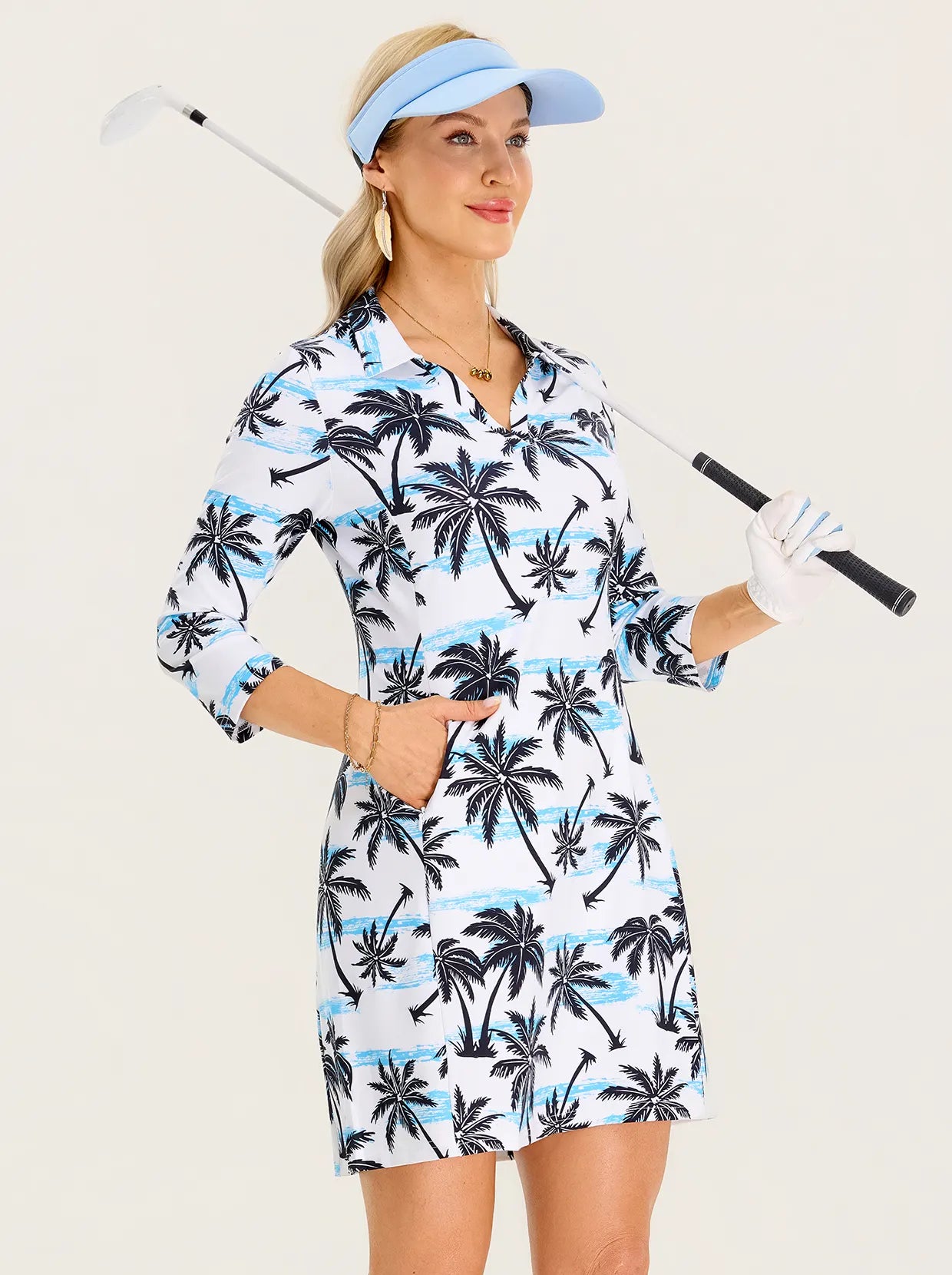 Meet your new go-to dress for the course and beyond. This V-neck Polo dress features a breathable, four-way stretch fabric to keep you comfortable through every swing and set. Built-in UPF50+ protection guards against UVA/UVB rays, while the three-quarter sleeves strike the perfect balance between coverage and mobility. The streamlined V-neck and tailored fit work beautifully for golf, tennis, pickleball, or casual every day.