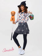 Soneven Halloween Cobweb Print Double-layer Athletic Skirted Leggings
