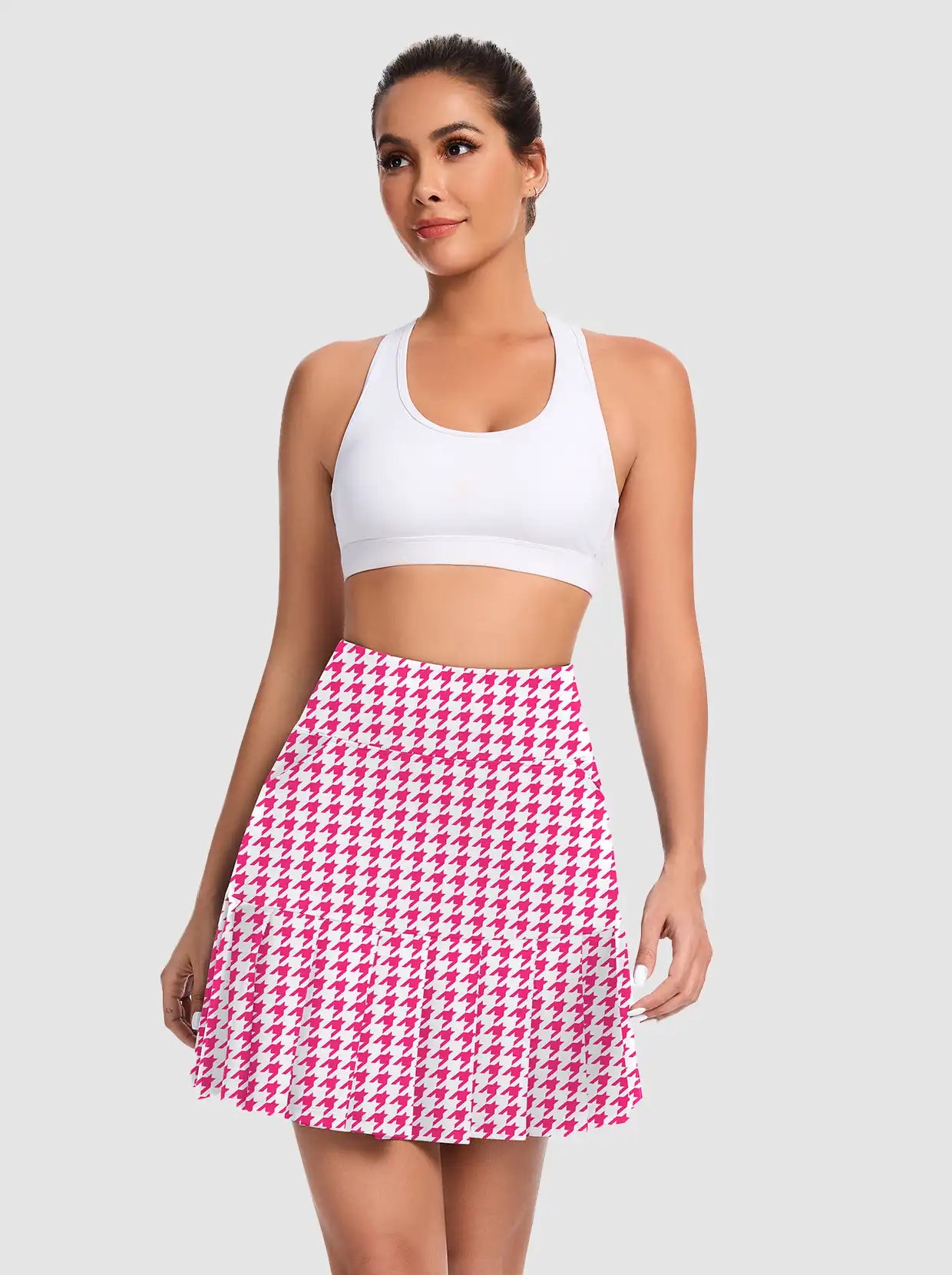 Pink Houndstooth 18" Pleated Active Skorts with Pockets