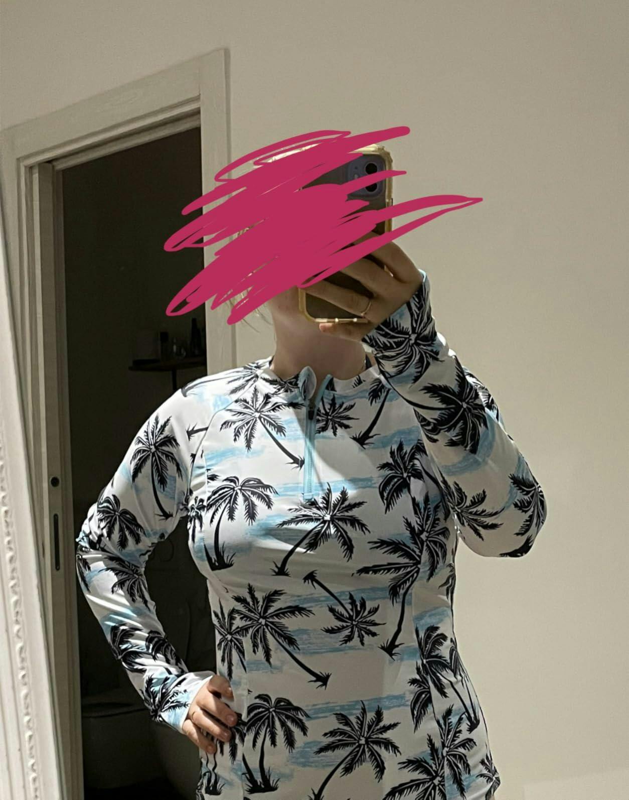 Embrace the tropical vibes with our coconut tree long-sleeve rash guard. Designed for maximum sun protection, our rash guard features long sleeves and a thumbhole design to shield your skin from harmful UV rays. The quarter-zip closure allows for easy on/off and temperature regulation. Made from soft, breathable fabric, it keeps you cool and comfortable during all your water adventures.