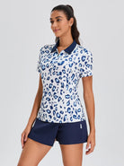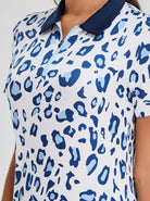 Blue Leopard Print Quarterzip Short Sleeves Golf Polo Shirt for Women
