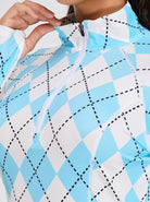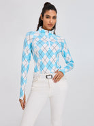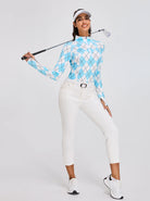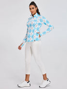 Ladies Blue Checkerboard Quarter-zip Long-sleeve Shirt with Pockets