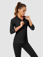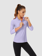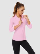 Basic Quarter-zip 3/4 Sleeve Shirt For Women