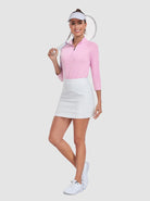 Elevate your golf game with our women's basic 3/4 sleeve polo top. Crafted from soft, moisture-wicking fabric, this shirt is designed to keep you comfortable and dry throughout your round. The 4-way stretch construction allows unrestricted movement, while the raglan sleeves provide an added range of motion. The solid color makes these golf clothes for women incredibly versatile, easily transitioning from the course to everyday activities.