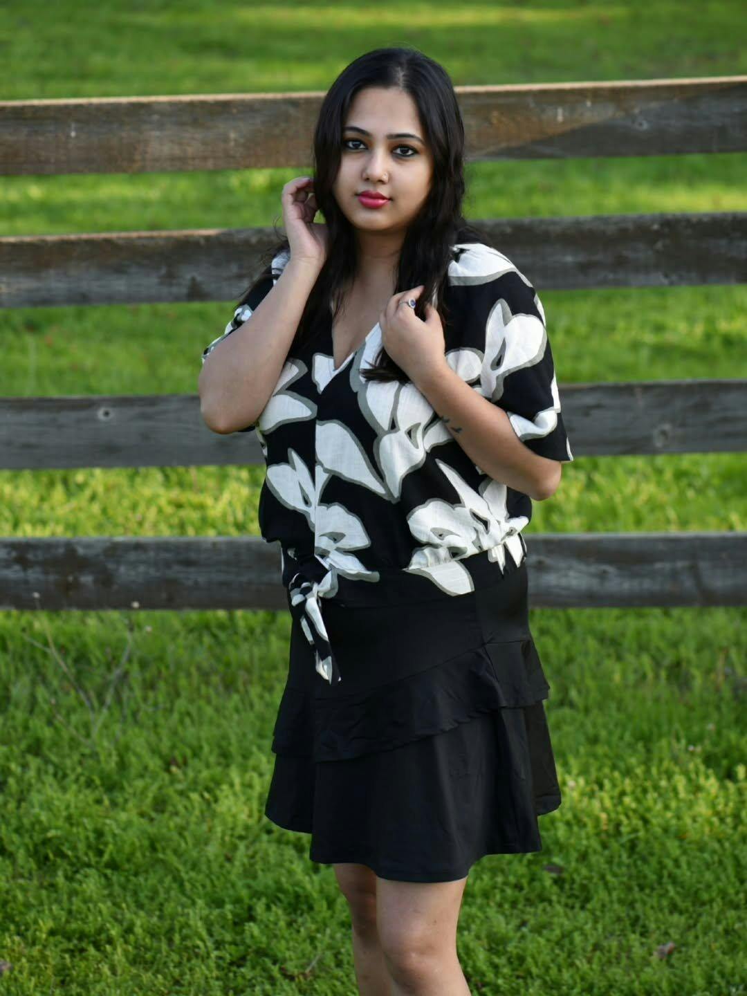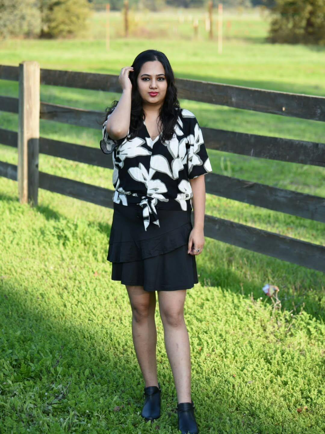 Solid Black Double-Layer 17'' Ruffled Skorts