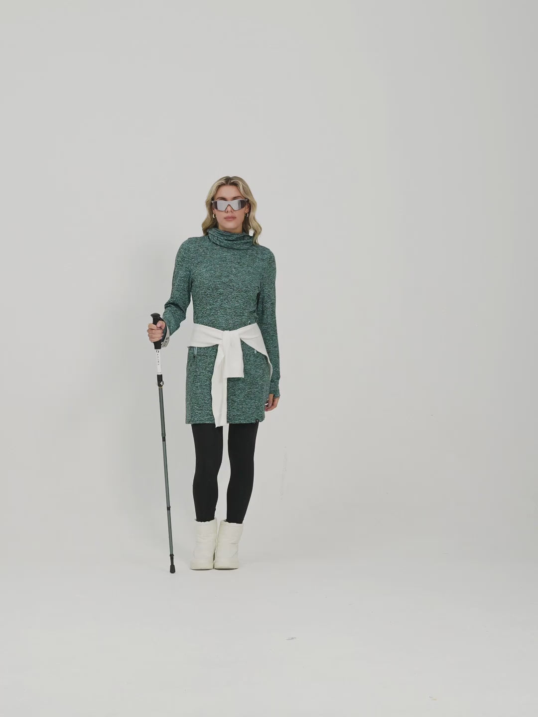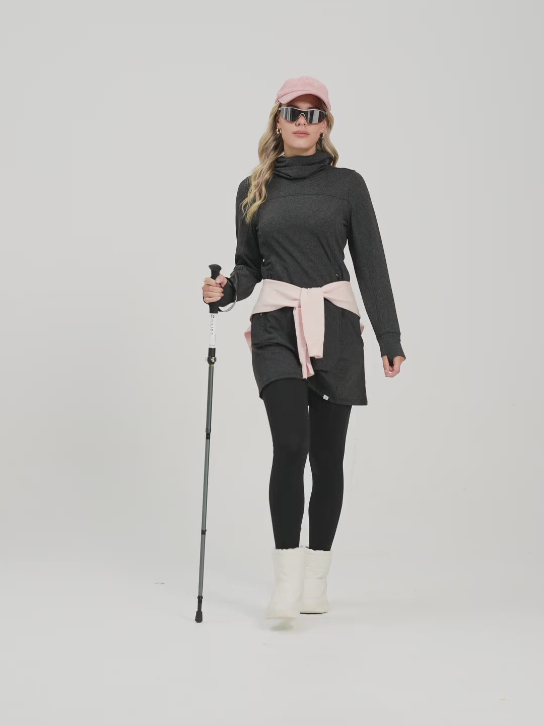 The Cowl Neck Long-Sleeve Fleece Dress blends style and functionality. Made from lining soft fleece, it offers ultimate comfort. Convenient pockets provide easy storage, while thumbholes keep the sleeve in place and provide added warmth. The cowl neck can be looped over the ears to serve as a face mask, keeping out the wind and retaining warmth.