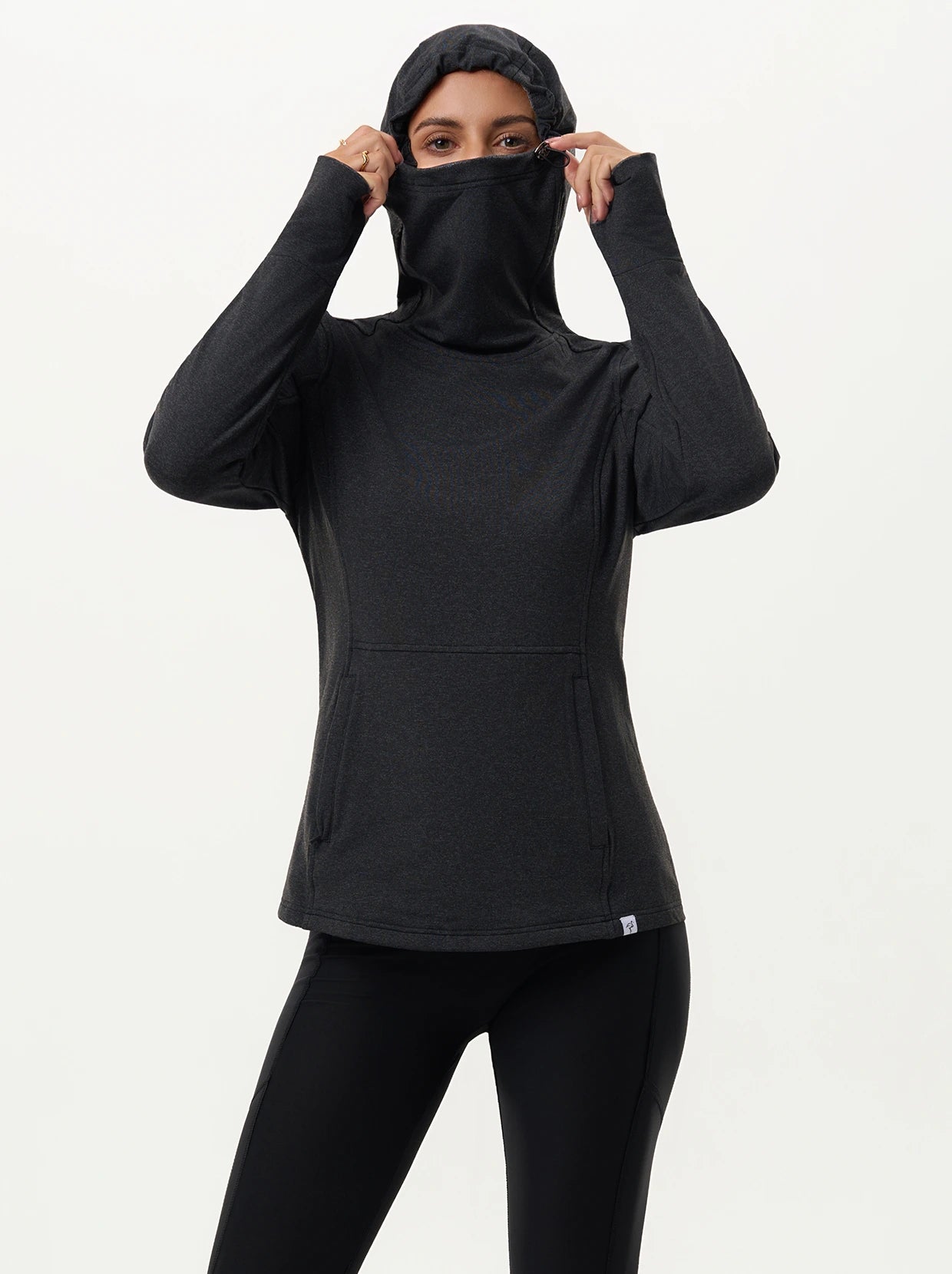 Wrap yourself in warmth with our functional long-sleeve thermal top. With soft and fleece-lined fabric, it offers ultimate comfort. The 4-way stretch ensures unrestricted movement, while thumb holes keep sleeves in place. Plus, enjoy added convenience with zipper pockets and a hood with a face cover. The face-over can be worn alone or with the hooded for added wind protection.