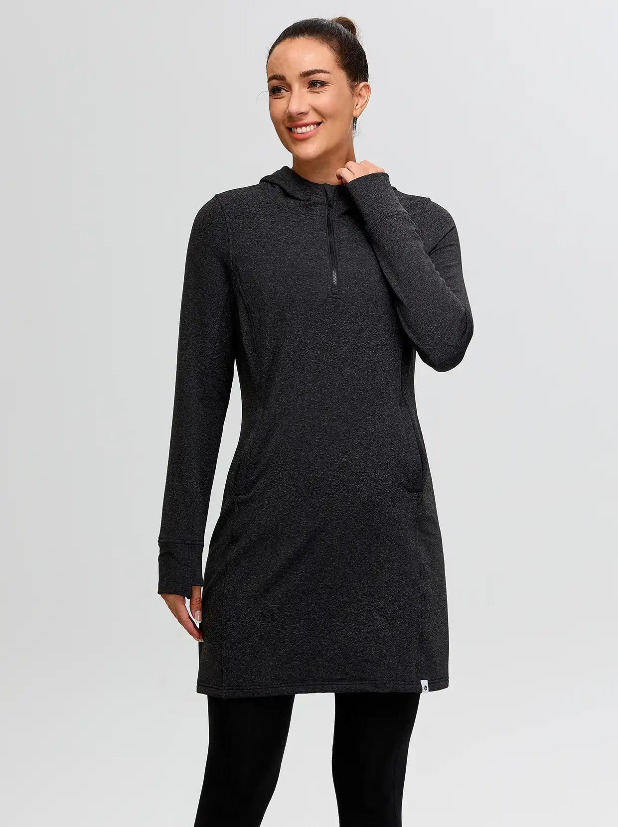 Quarter-zip Hooded Long-sleeve Fleece Dress for Women