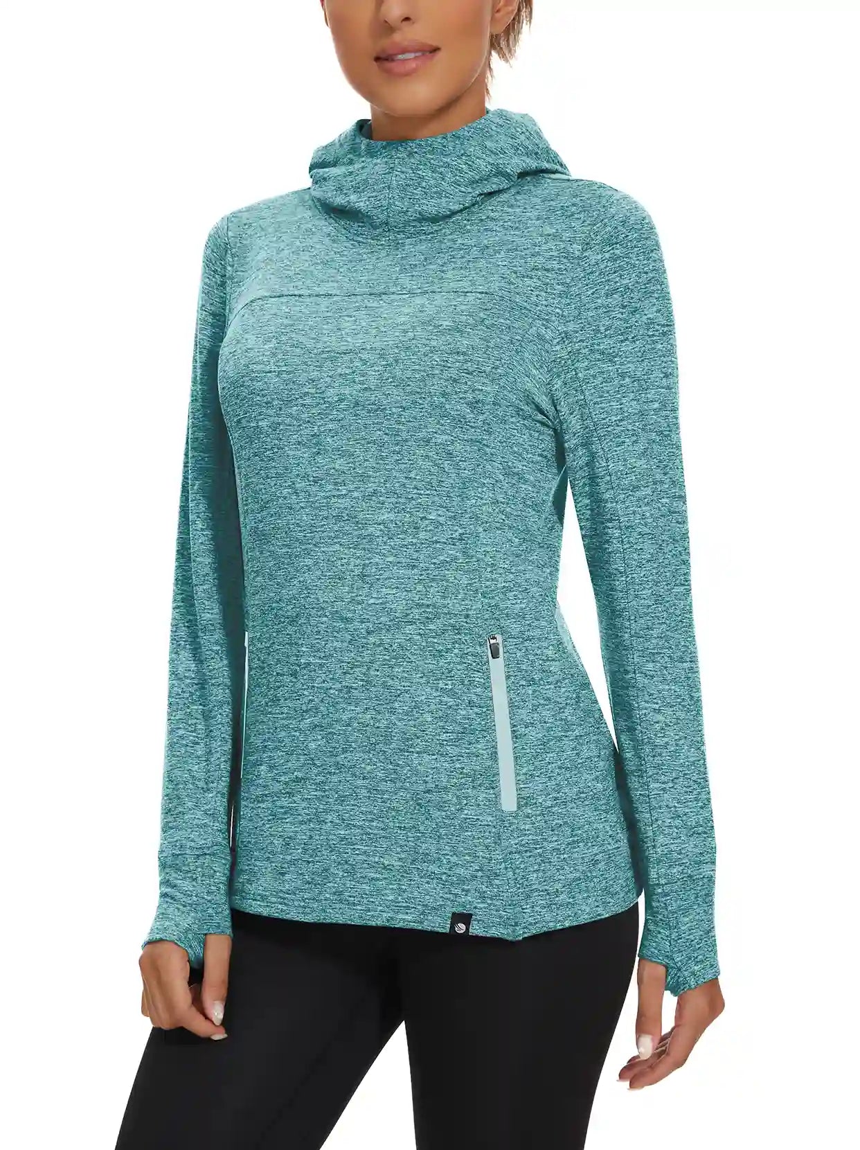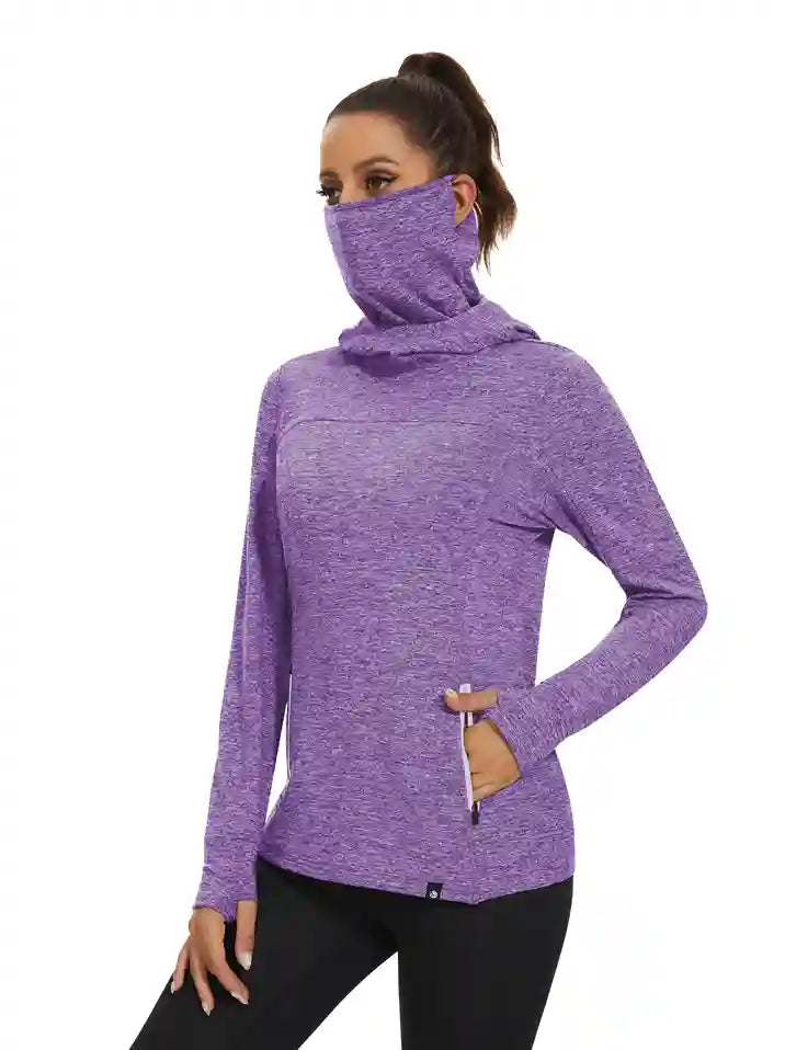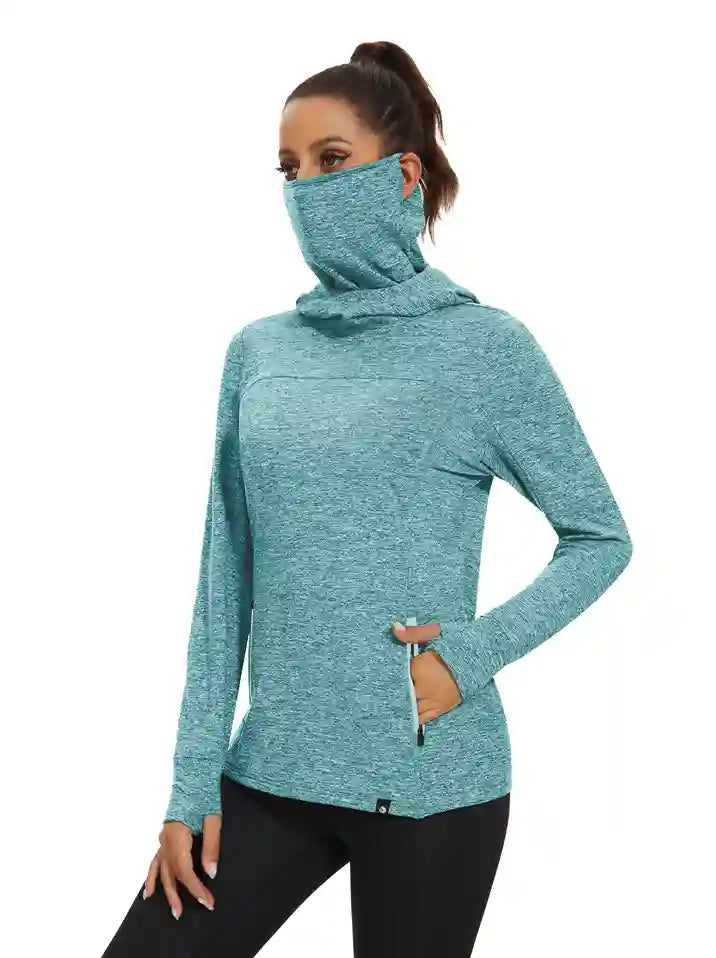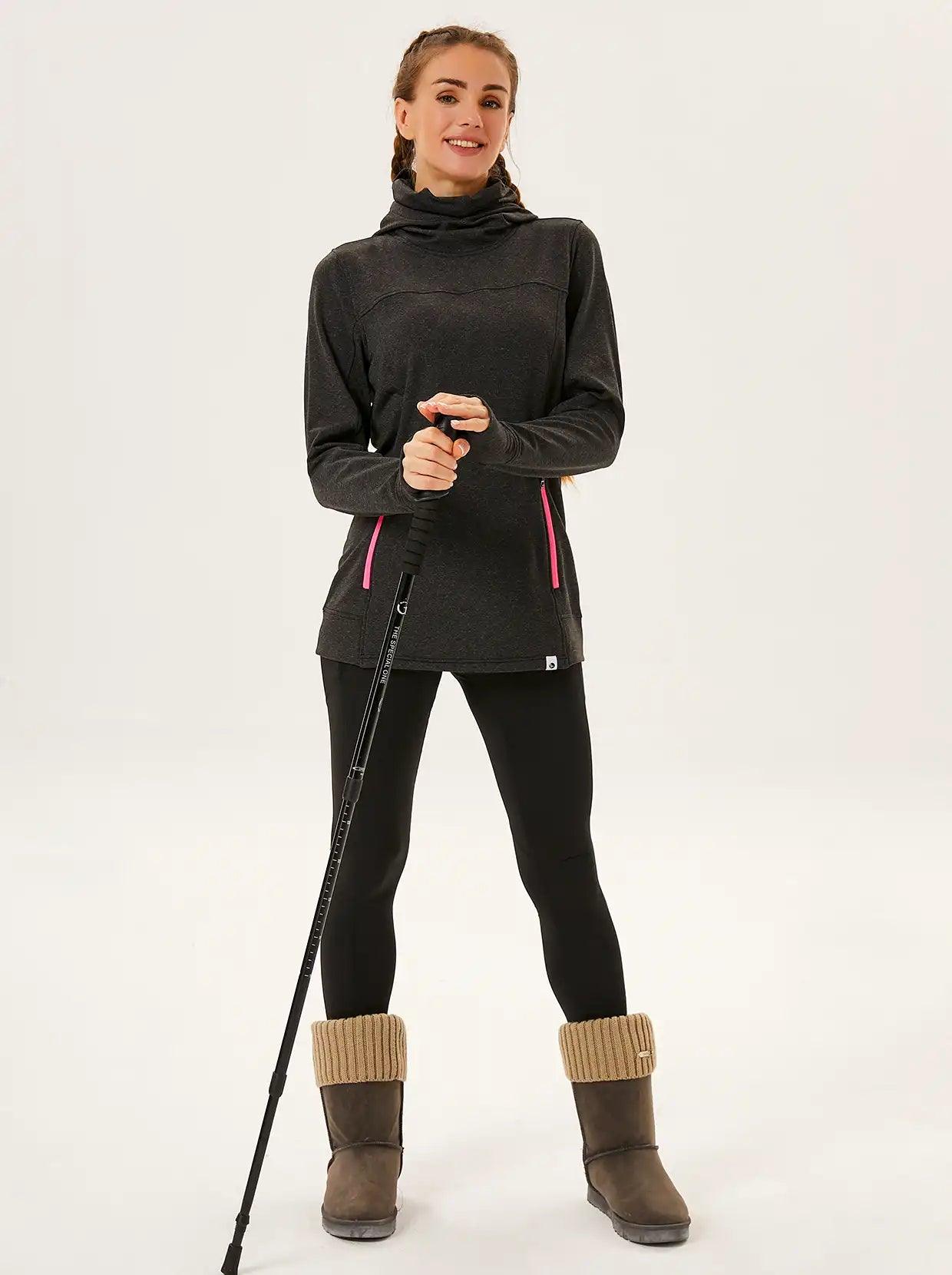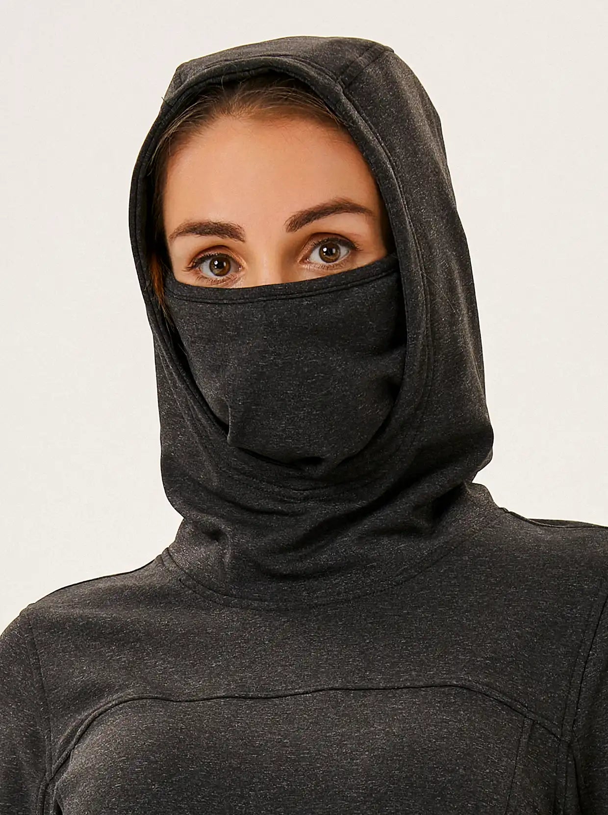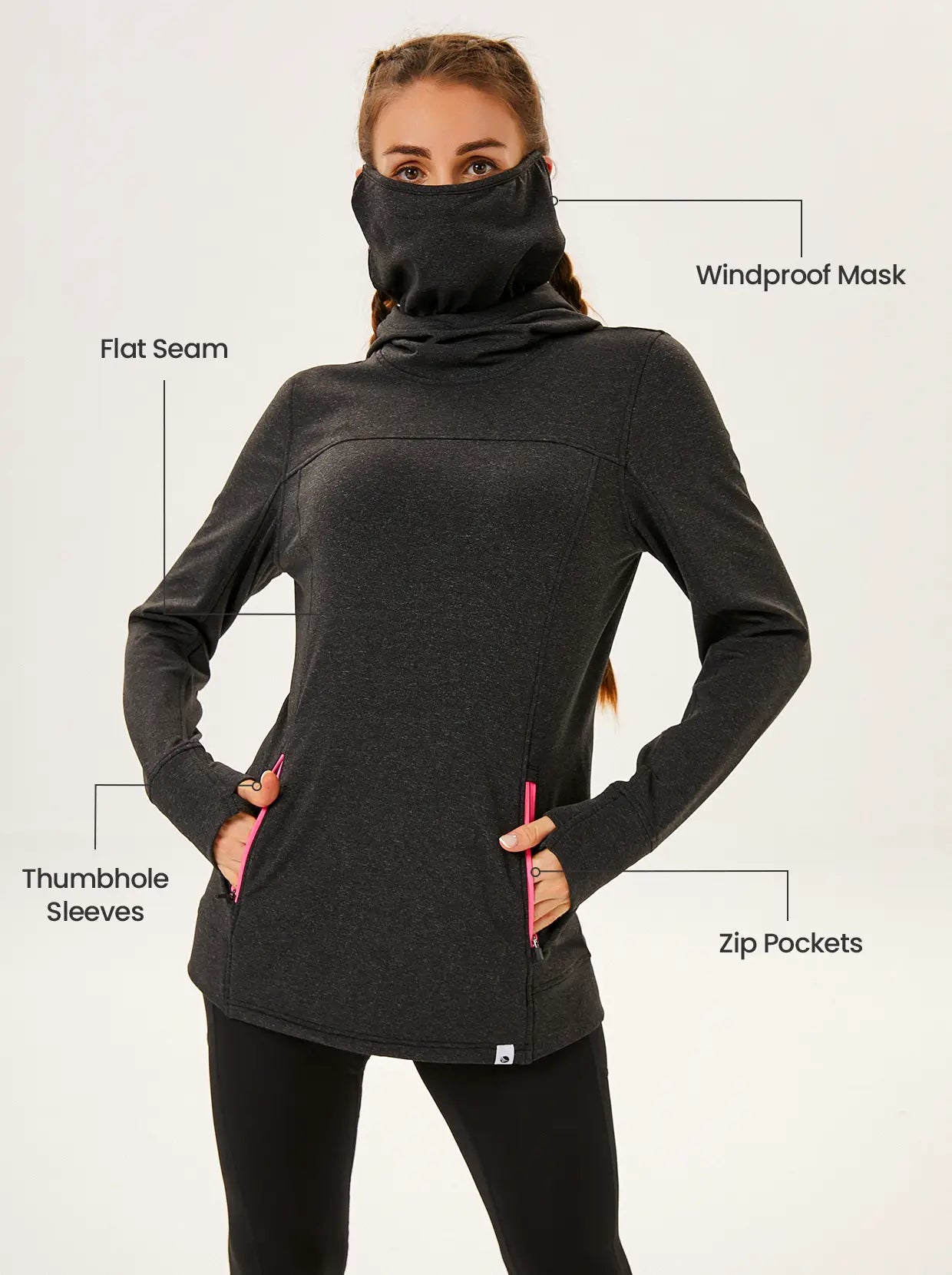 Stay warm and protected with our thermal hooded top. This versatile piece features a comfortable fleece lining, a neck gaiter for added warmth and protection, and thumbholes to keep your sleeves in place. The 4-way stretch fabric ensures maximum mobility, while the moisture-wicking technology helps keep you dry and comfortable.