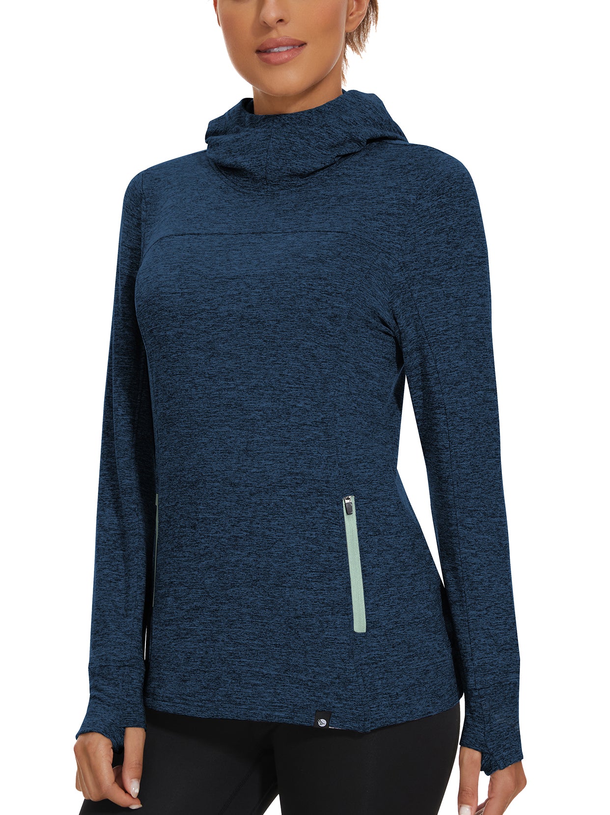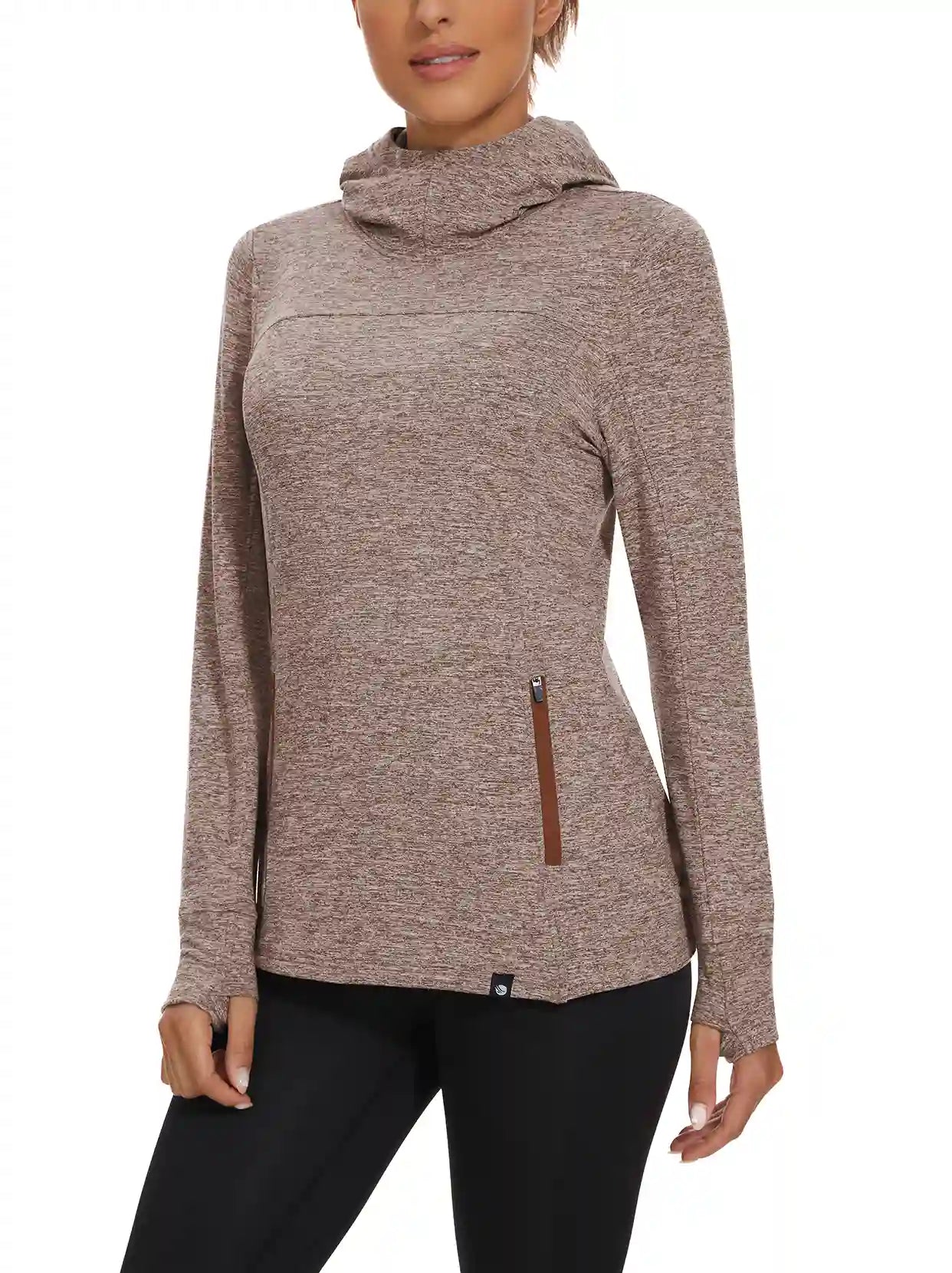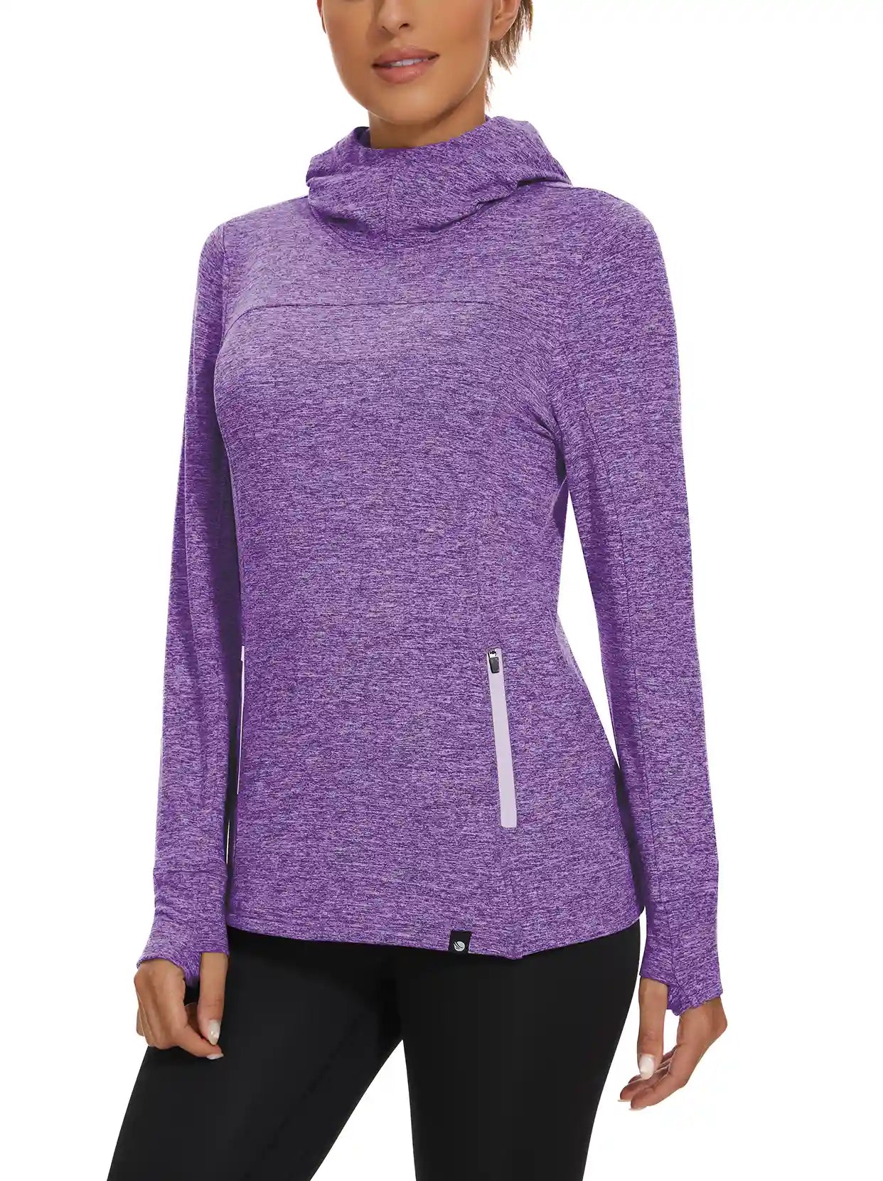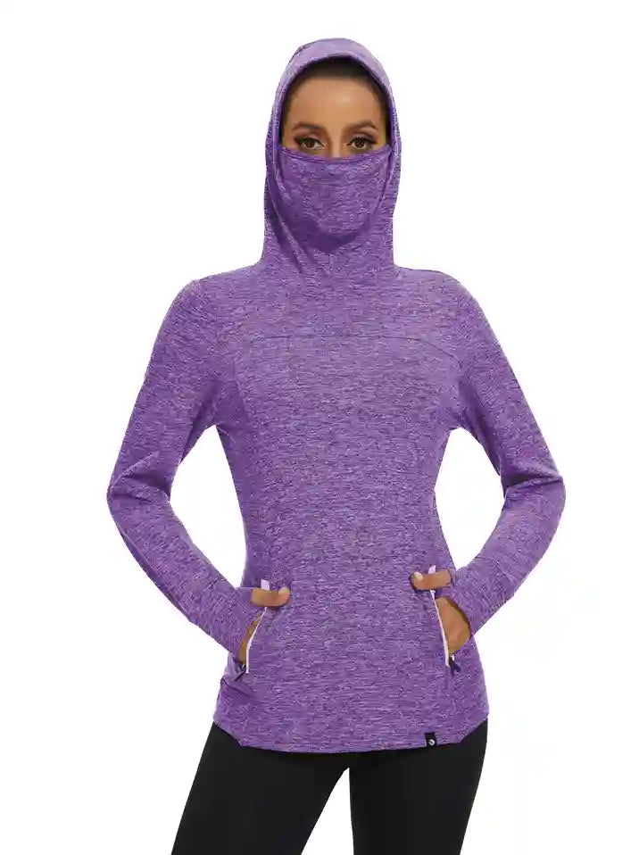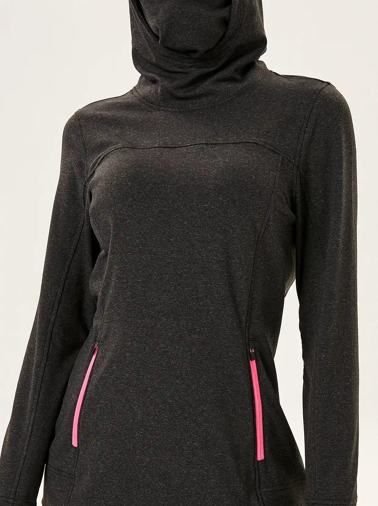 Stay warm and protected with our thermal hooded top. This versatile piece features a comfortable fleece lining, a neck gaiter for added warmth and protection, and thumbholes to keep your sleeves in place. The 4-way stretch fabric ensures maximum mobility, while the moisture-wicking technology helps keep you dry and comfortable.