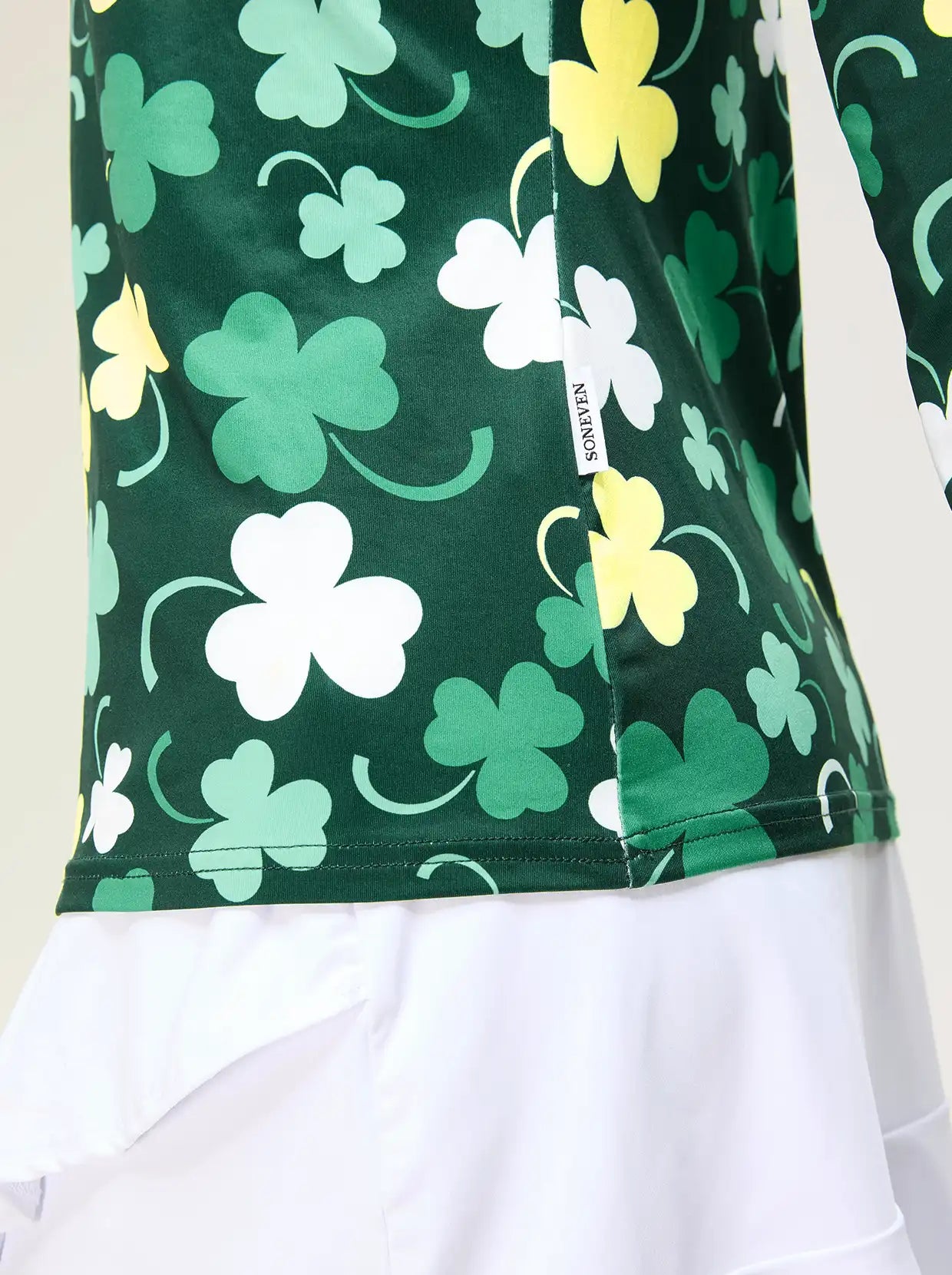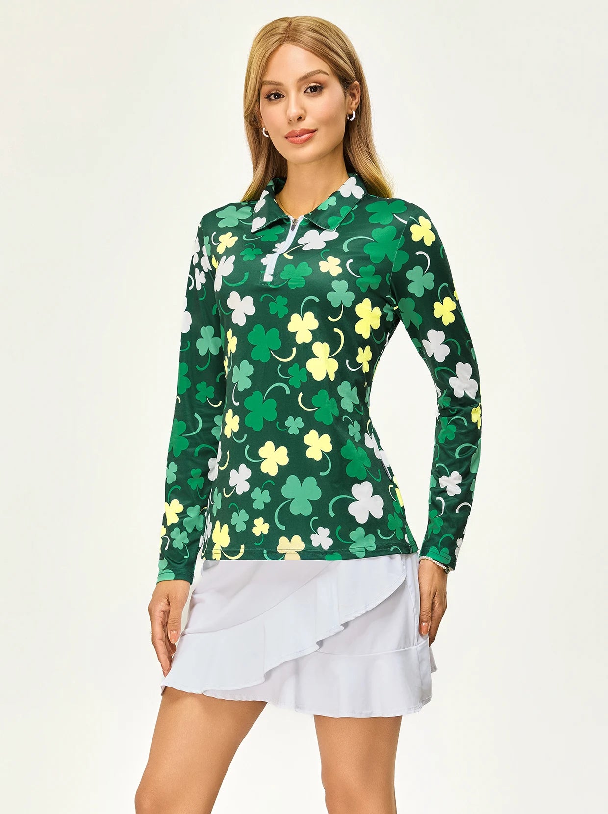 Multicolor Clover Quarter-zip 3/4 Sleeve Polo Shirt For Women