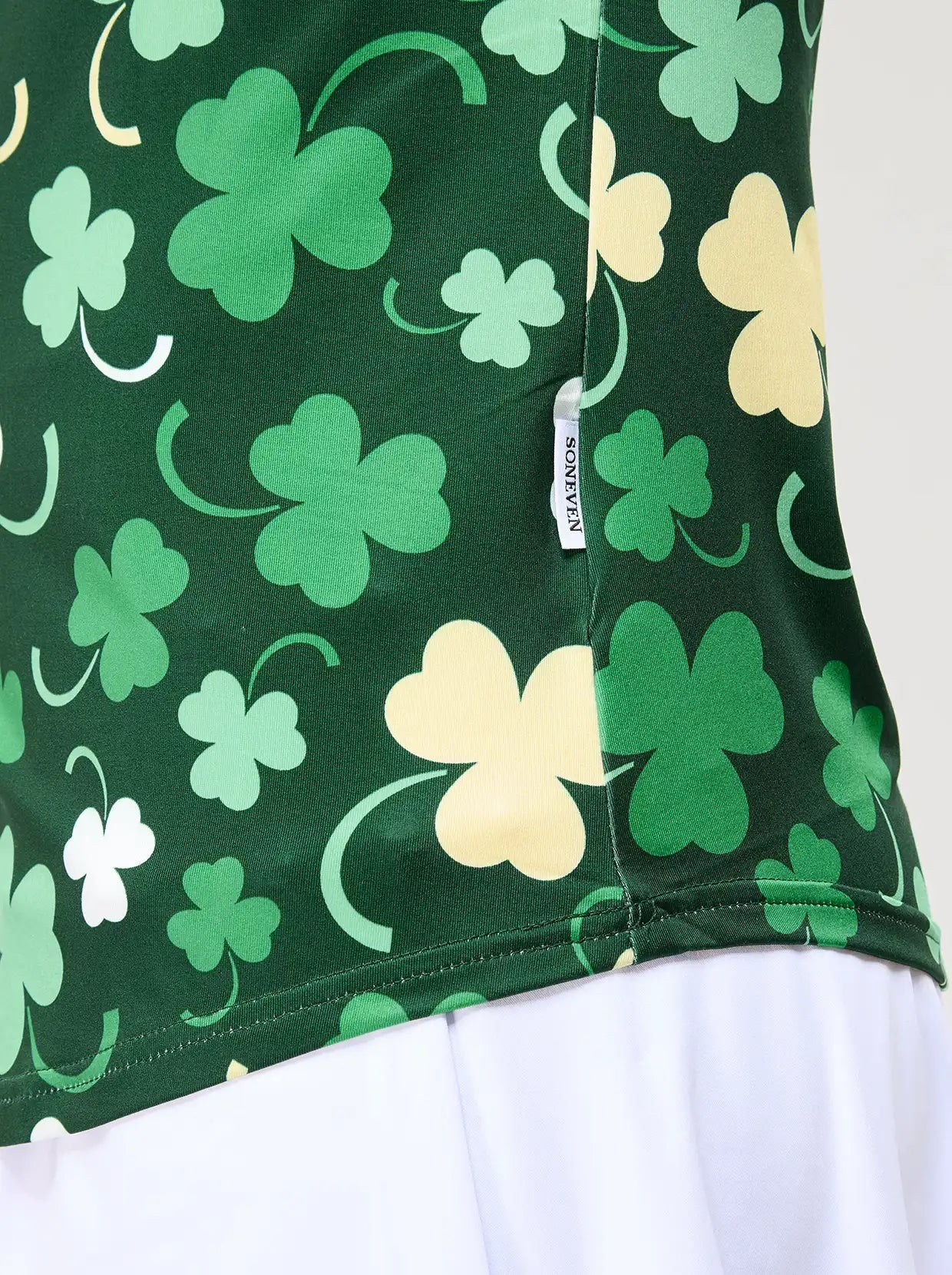 Green Four-leaf Clover Quarter-zip Sleeveless Polo Shirt For Women
