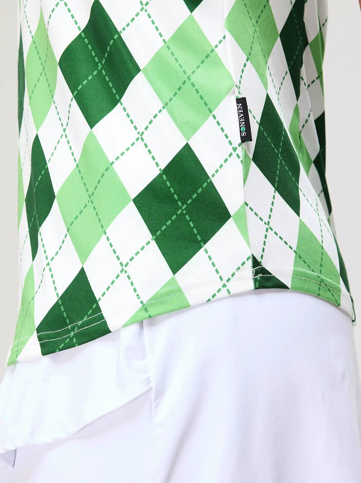Green and Black Checkerboard Short-sleeve Golf Shirt for Women