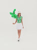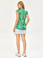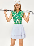 Shamrock and Floral Button-placket Ruffed Sleeveless Polo Shirt