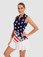 Blue Flag Print V-neck Sleeveless Polo Shirt For Ladies