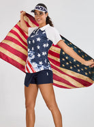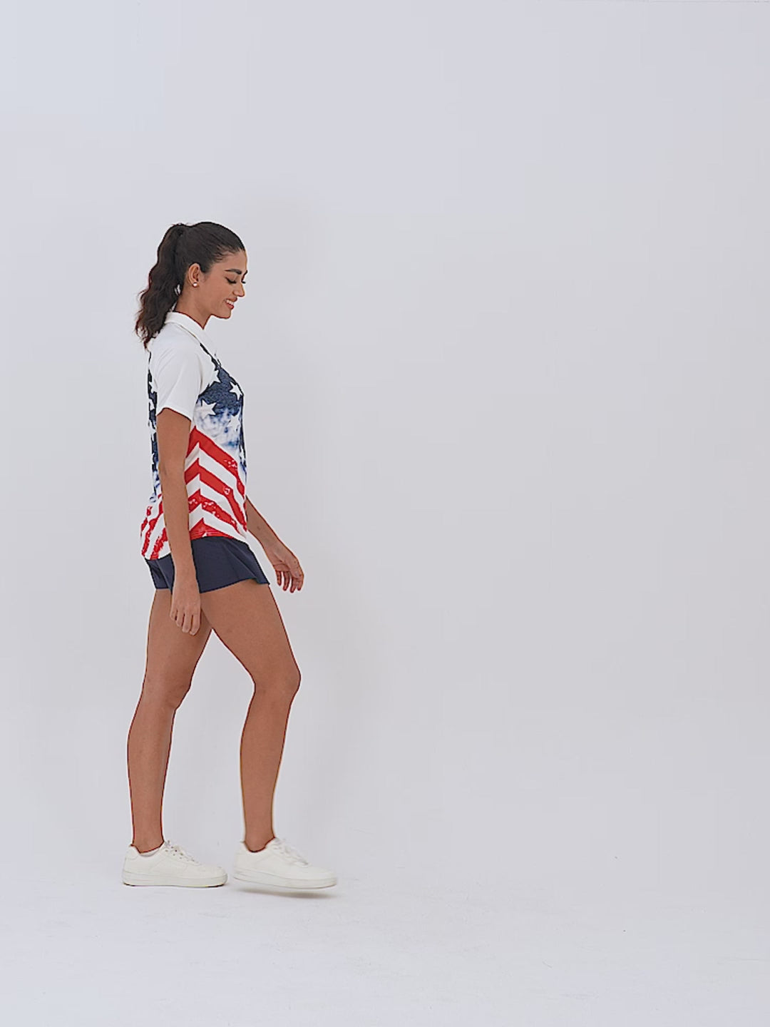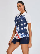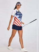 Navy American Flag Short Sleeve Golf Polo for Ladies