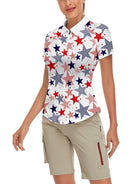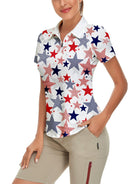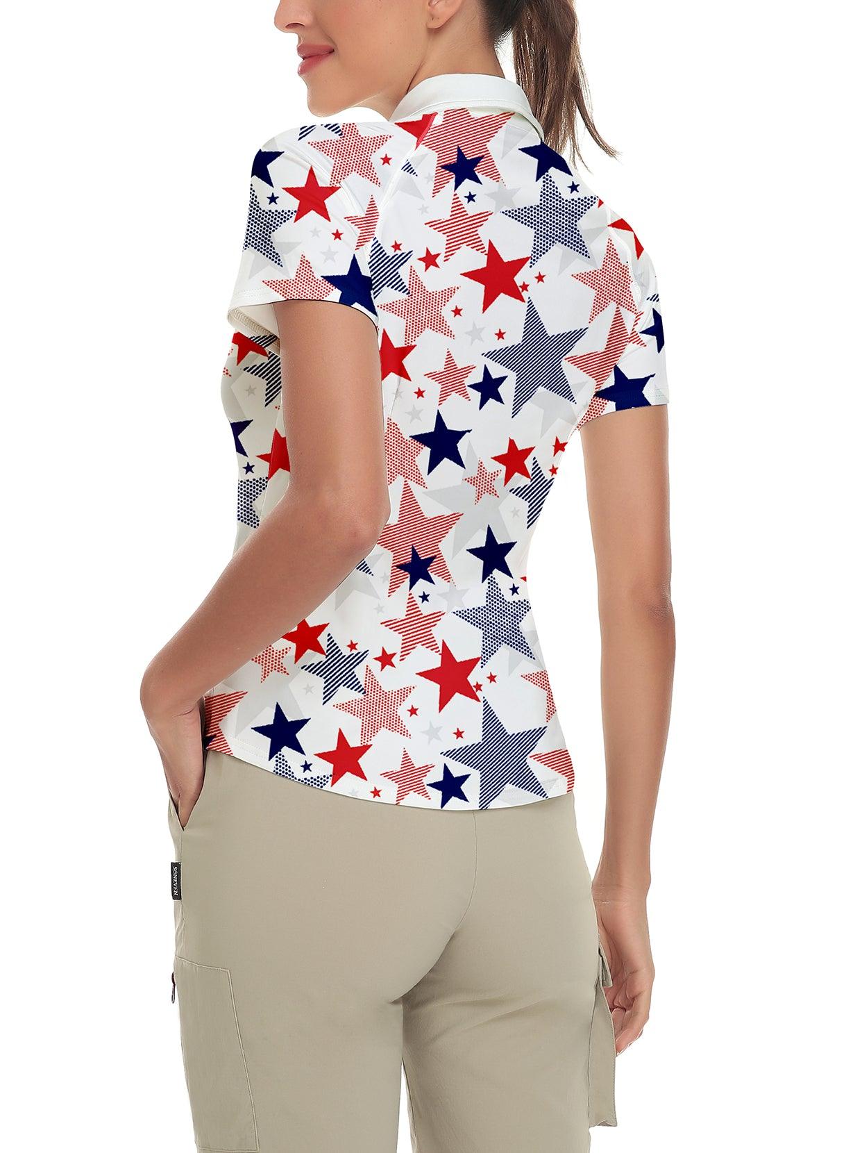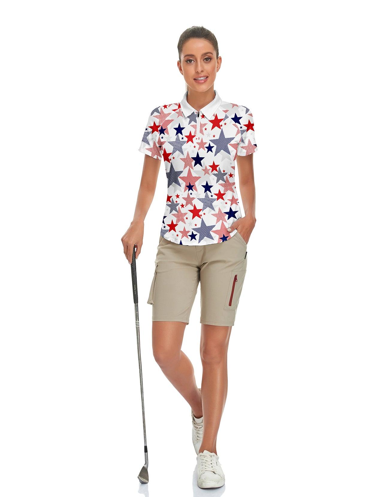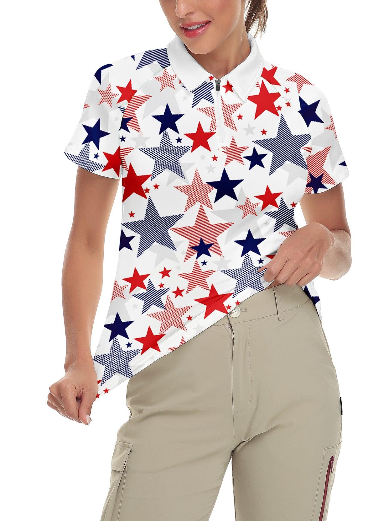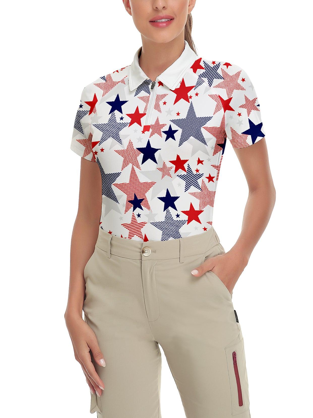 Multicolor Stars Quarter-Zip Short-sleeve Golf Polo for Women
