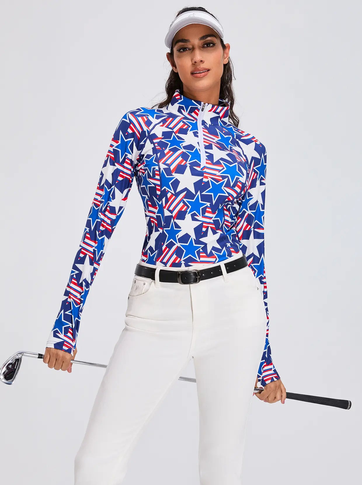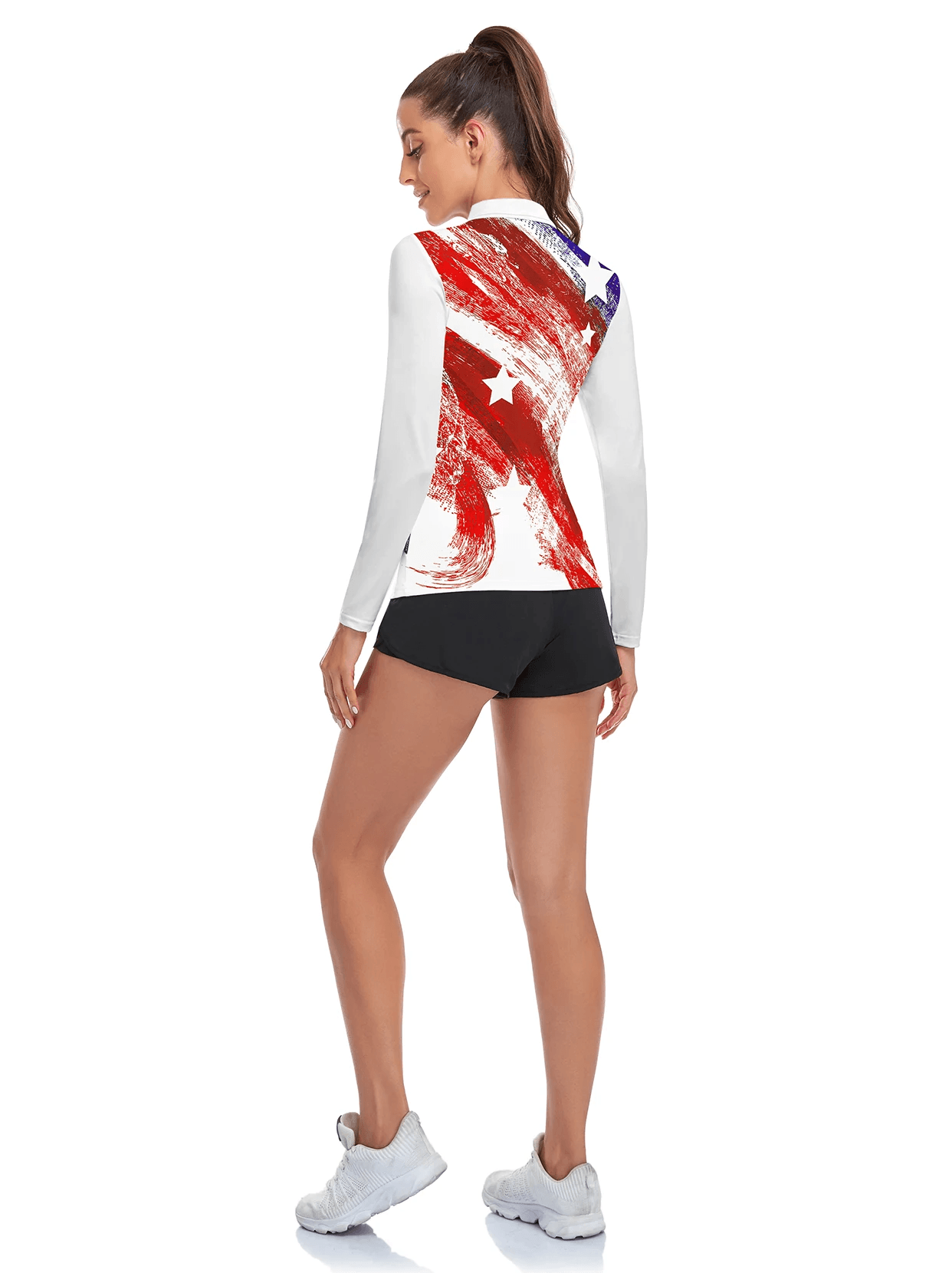 If you plan on spending time near the water, ladies' patriotic golf shirts can also double as a cover-up. Layer it over your swimsuit to stay protected from the sun while still looking fashionable. Whether you’re at the beach or by the pool, these shirts offer a stylish yet functional way to enjoy a sunny day while embracing your national pride.