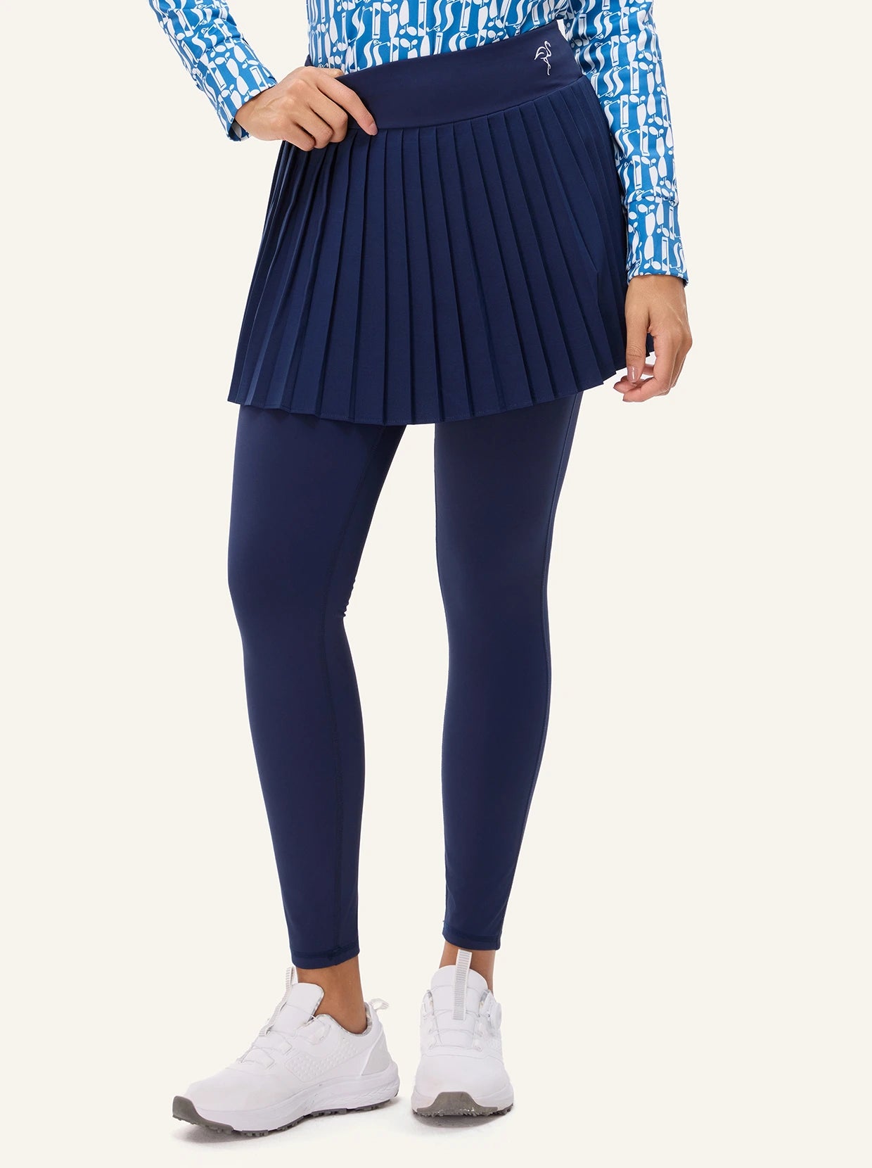 Navy Nylon Pleated Skirted Leggings (Ship in 7 Days)