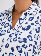 Blue Leopard Ruffled Sleeveless Polo Shirt For Women