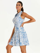 Embrace the wild with our sleeveless pleated dress from our Call of the Wild Collection. Crafted from a 4-way stretch fabric with a striking blue wildlife print, this dress offers flexible freedom. Perfect for your next round, this is the ultimate women's golf dress.