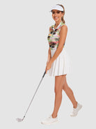 Coconut Tree Quarter-zip Sleeveless Polo Shirt For Women
