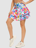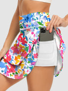 Colorful Floral 15" Double-layer Active Skort with Shorts and Pockets