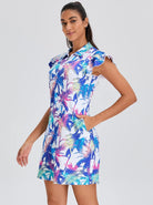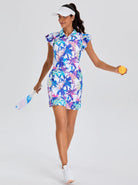 Stay stylish and comfortable with our Colorful Leaf Quarter-zip Dresses. Made with moisture-wicking and breathable fabric, it's perfect for staying cool during outdoor activities like golf, tennis, pickleball, or simply as daily wear. Plus, the stretch material and inner shorts provide maximum mobility and functionality, while the fun leaf print and ruffle sleeves add a touch of flair. With this dress, you'll have everything you need to conquer your day in style.
