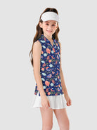 Blooming with style, our Floral and Bird Pattern Sleeveless Polo is a must-have for her wardrobe. Crafted from a soft, breathable, and stretchy fabric, this polo keeps her comfortable and dry, no matter the adventure. The flattering V-neck and sleeveless design offer freedom of movement, making it ideal for playground fun and family outings. The delightful floral and bird print adds a touch of nature-inspired charm to any look.
