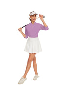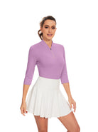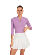 Purple V-neck Quarter-Zip 3/4 Sleeve Shirt for Women