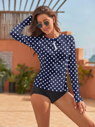 Blue Polka Dots Quarter-zip Long-sleeve Rash Guard