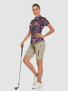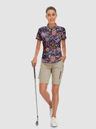Colorful Flower Quarter-zip Short-sleeve Golf Polo for Women