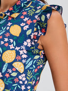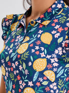 Lemon Print Ruffled Sleeveless Button-placket Shirt