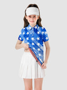 White Star Button-Placket Short-sleeve Polo Shirt for Girls