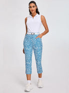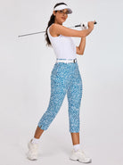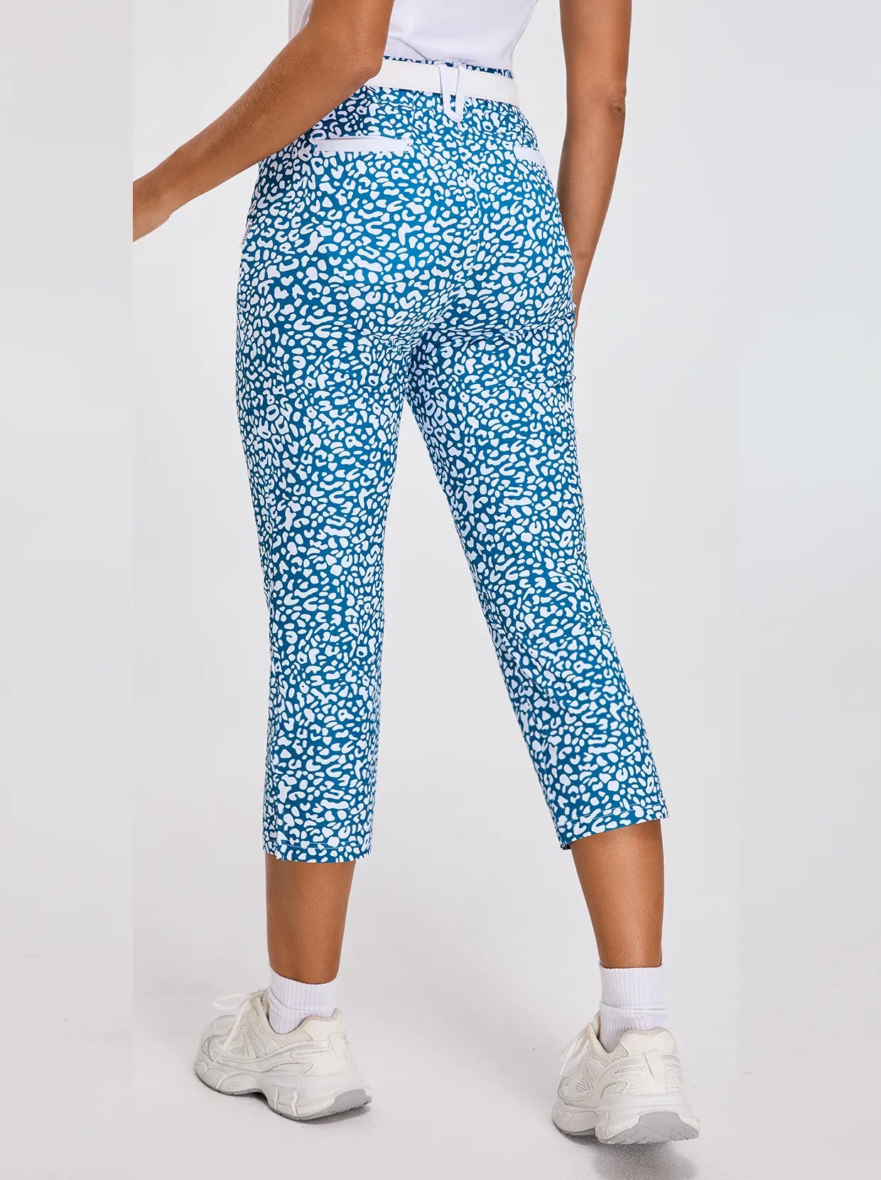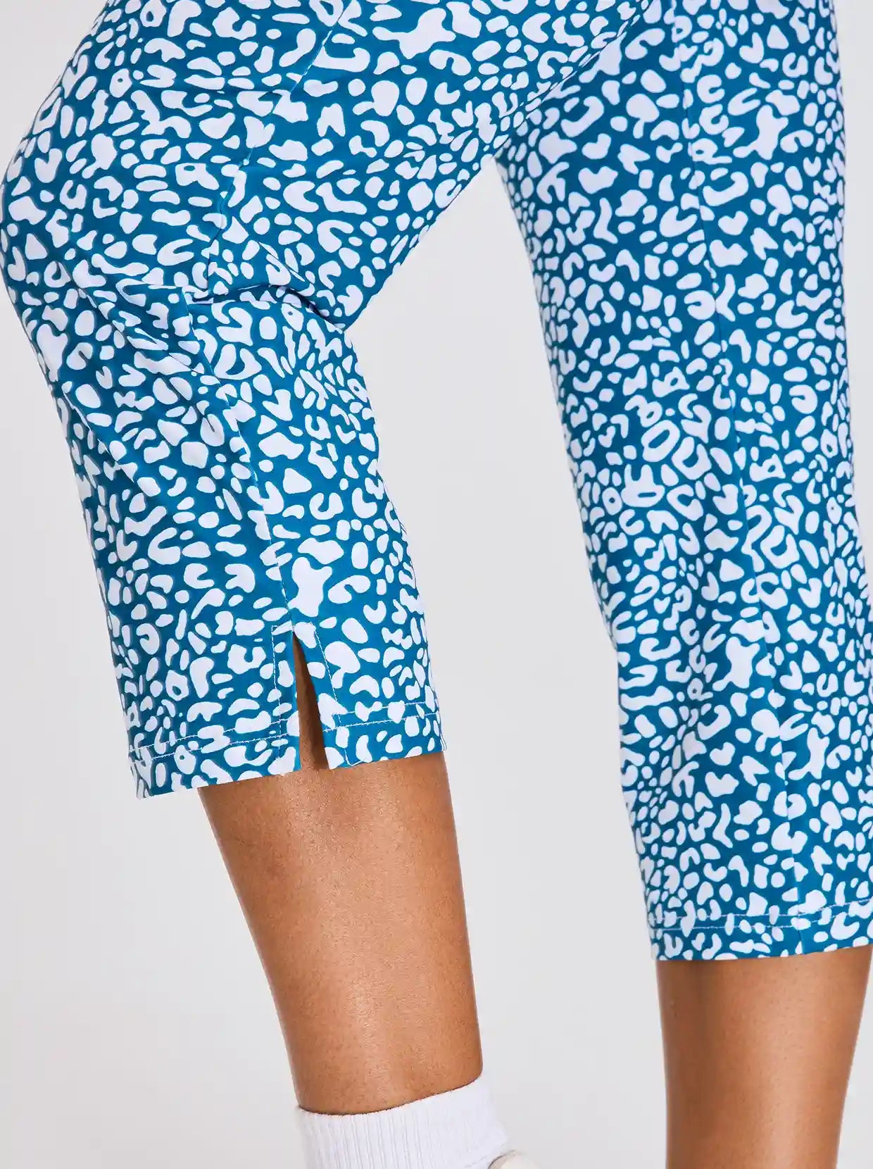 Women's Blue Leopard High-Rise 7/8 Pants with Pockets