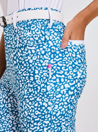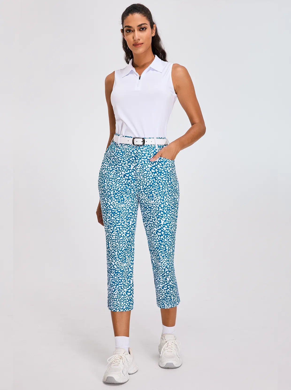 Rise to the top of your game in our Women's Blue Leopard High-Rise 7/8 Pants with Pockets! Made with a durable, four-way stretch fabric, these pants provide unrestricted movement to dominate the course. Keep all your essentials close with 4 convenient pockets. The elastic back waistband offers a comfortable and customizable fit, while the zipper and button closure add an extra layer of security. Take on the challenge and conquer the course in bold style with these pants!