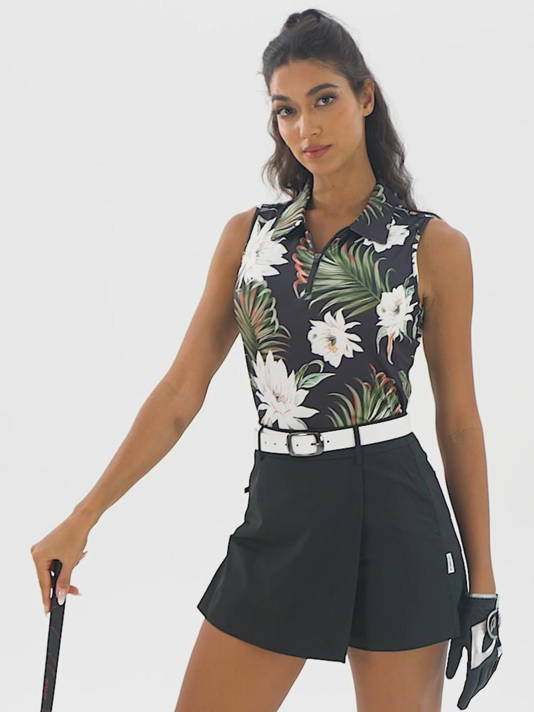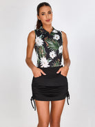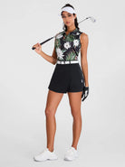 Hawaii is here! Step into paradise with our stylish and functional Hawaiian-inspired polo shirts. This sleeveless top features a vibrant floral and palm leaf print that's perfect for sunny days on the green or at the beach. The sleeveless design ensures maximum movement and airflow, while the breathable fabric keeps you cool and comfortable. The versatile design pairs effortlessly with skirts, skinny jeans, or shorts, making it a must-have for any tropical wardrobe.