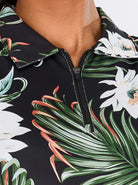 Hawaii Style Floral Quarter-zip Sleeveless Golf Polo Shirt