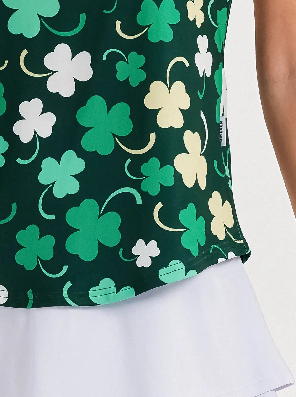 Green Clover Quarter-zip Sleeveless Polo Shirt for Women