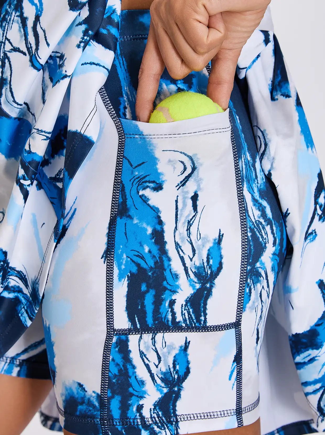 Unleash your inner athlete with our abstract pattern sleeveless dress. The 4-way stretch material allows for maximum range of motion, giving you the freedom to move. With inner shorts and back pleats, this dress is designed for comfort and versatility. Take on any challenge, whether it's pickleball or your daily routine, in this breathable and soft quarter-zip dress. Don't settle for boring and basic; elevate your performance and style with this abstract print dress.