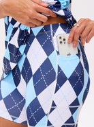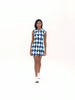 34" Blue Checkerboard Quarter-zip Ruffled Sleeveless Dress with Shorts