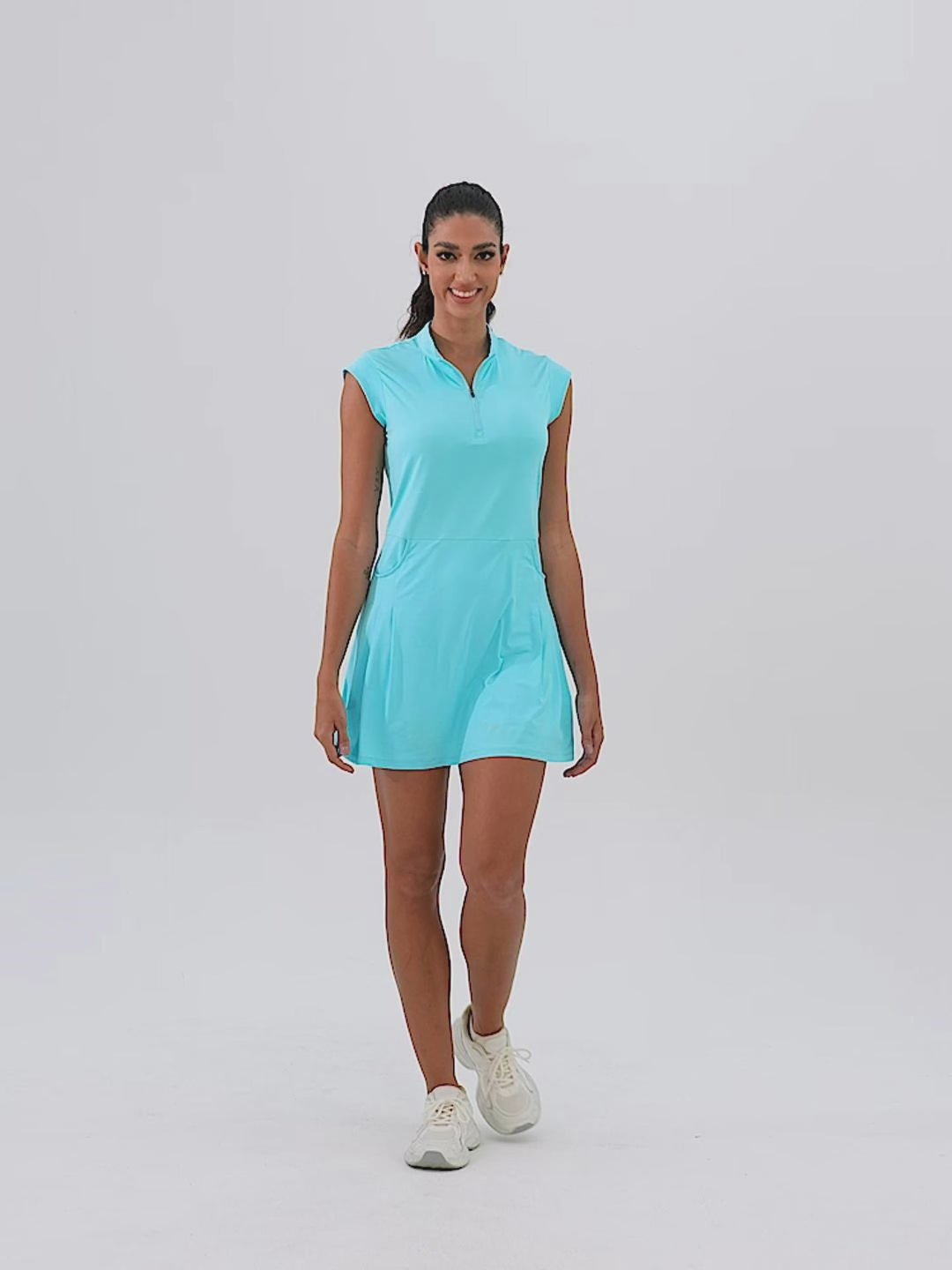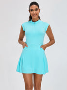 LuxeCool™ Blue 34“ Quarter-zip Sleeveless Dress with Pockets and Shorts