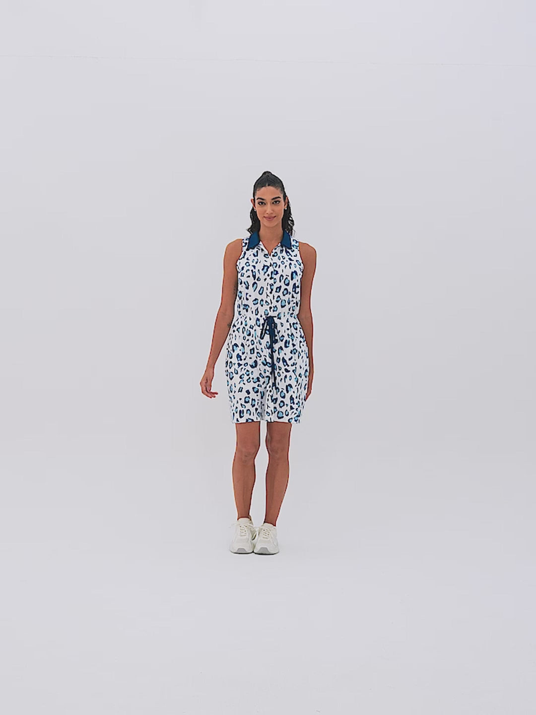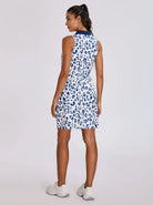 35" Blue Leopard Half-Button Placket Sleeveless Dress For Women