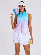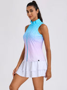 Blue-Purple Gradient Full-Zip Sleeveless Polo Shirt For Women