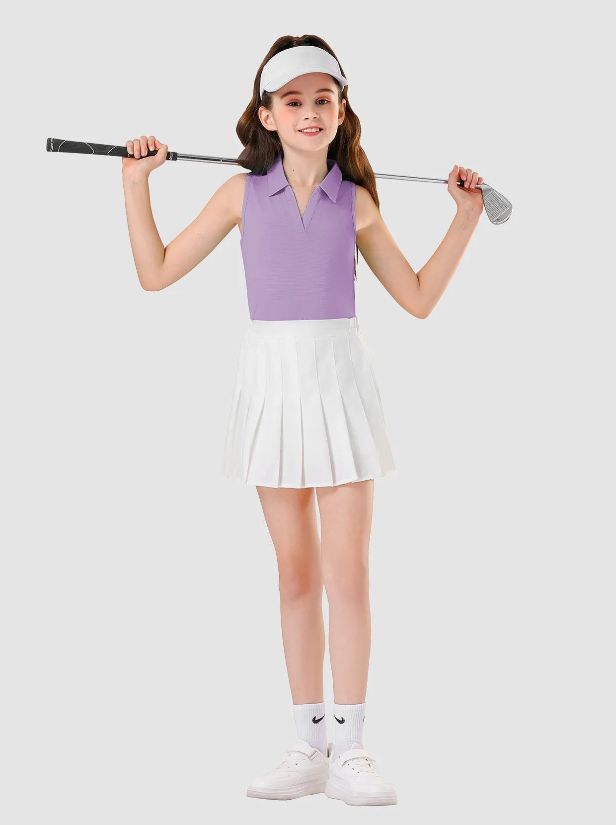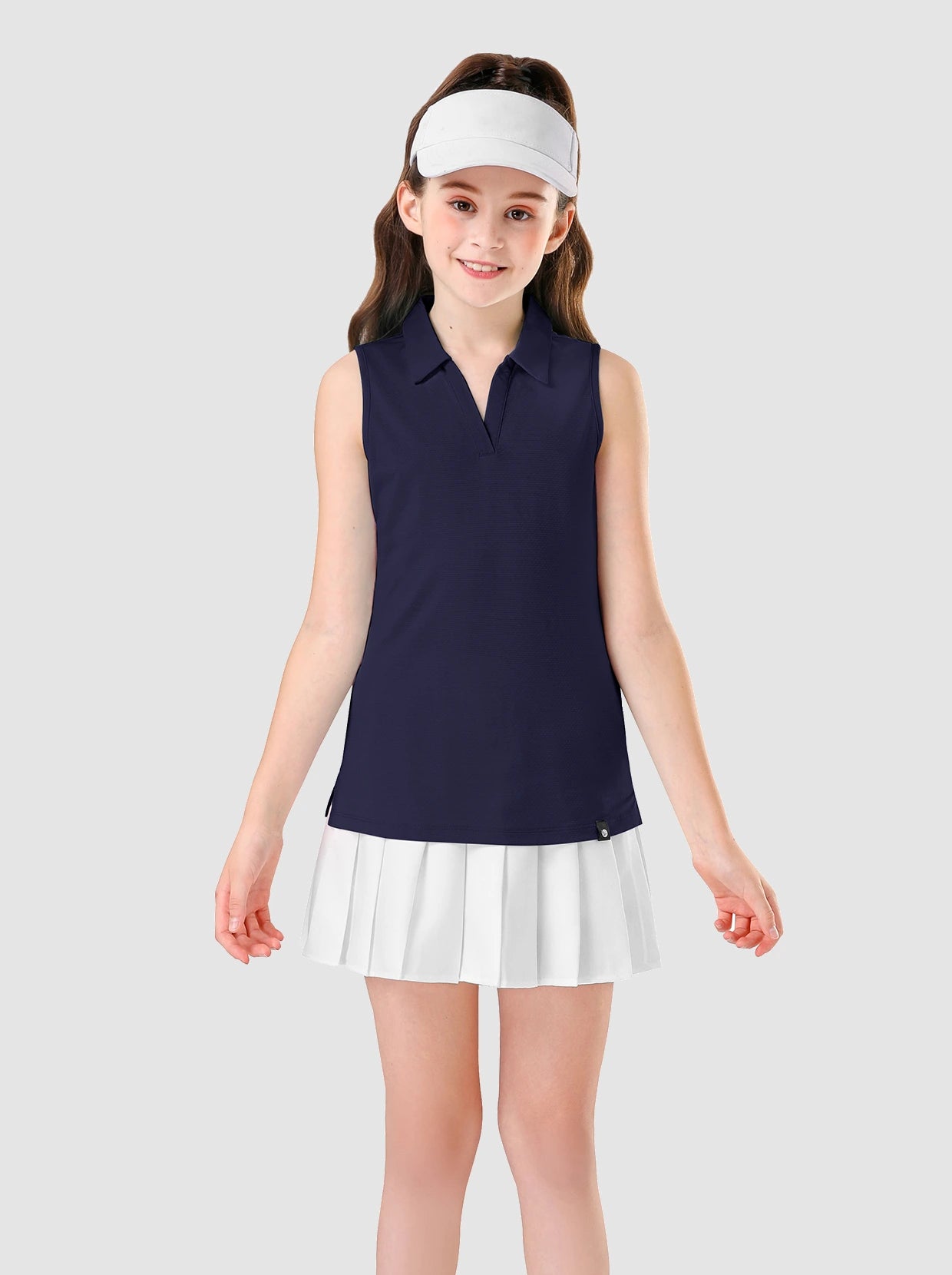 Girls Solid Color V-neck Sleeveless Polo Top for Girls