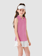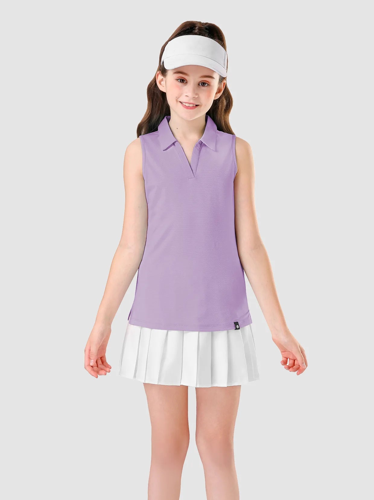 Keep her cool and comfortable with our Girl's V-Neck Sleeveless Polo Top. Designed with active girls in mind, this top is made from a soft, moisture-wicking fabric that offers 4-way stretch for ultimate comfort and freedom of movement. Available in vibrant colors like navy, light blue, pink, and purple, it's perfect for girls aged 6 to 14. Whether she's playing sports, exploring the outdoors, or simply enjoying a casual day, this versatile polo top will keep her feeling great. Say goodbye to discomfort and hello to effortless cool!